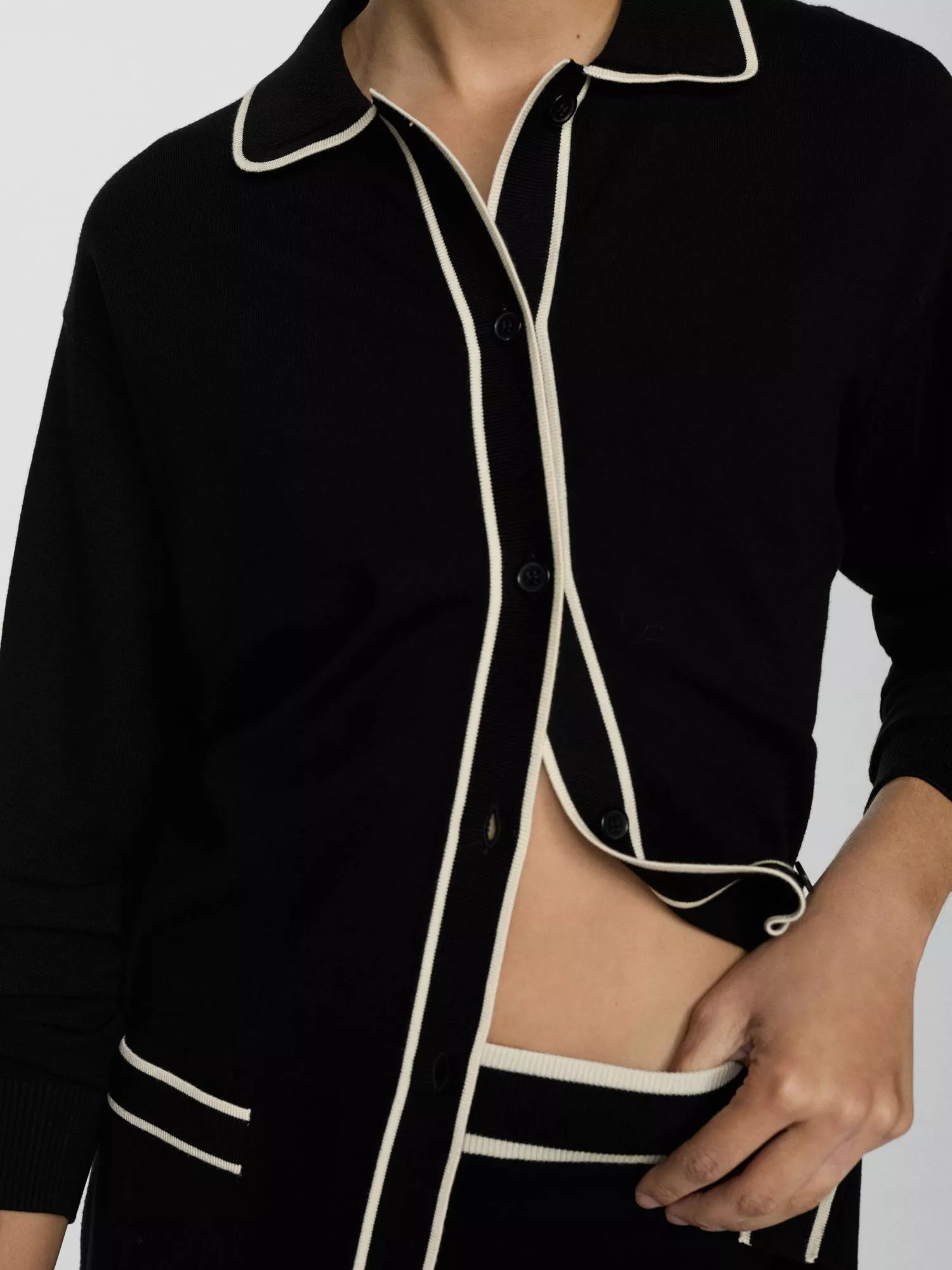 Framed with a neckline that buttons all the way up, this contrast piped longline cardigan from Mango is made from long-lasting fabric that will see you through season after season.