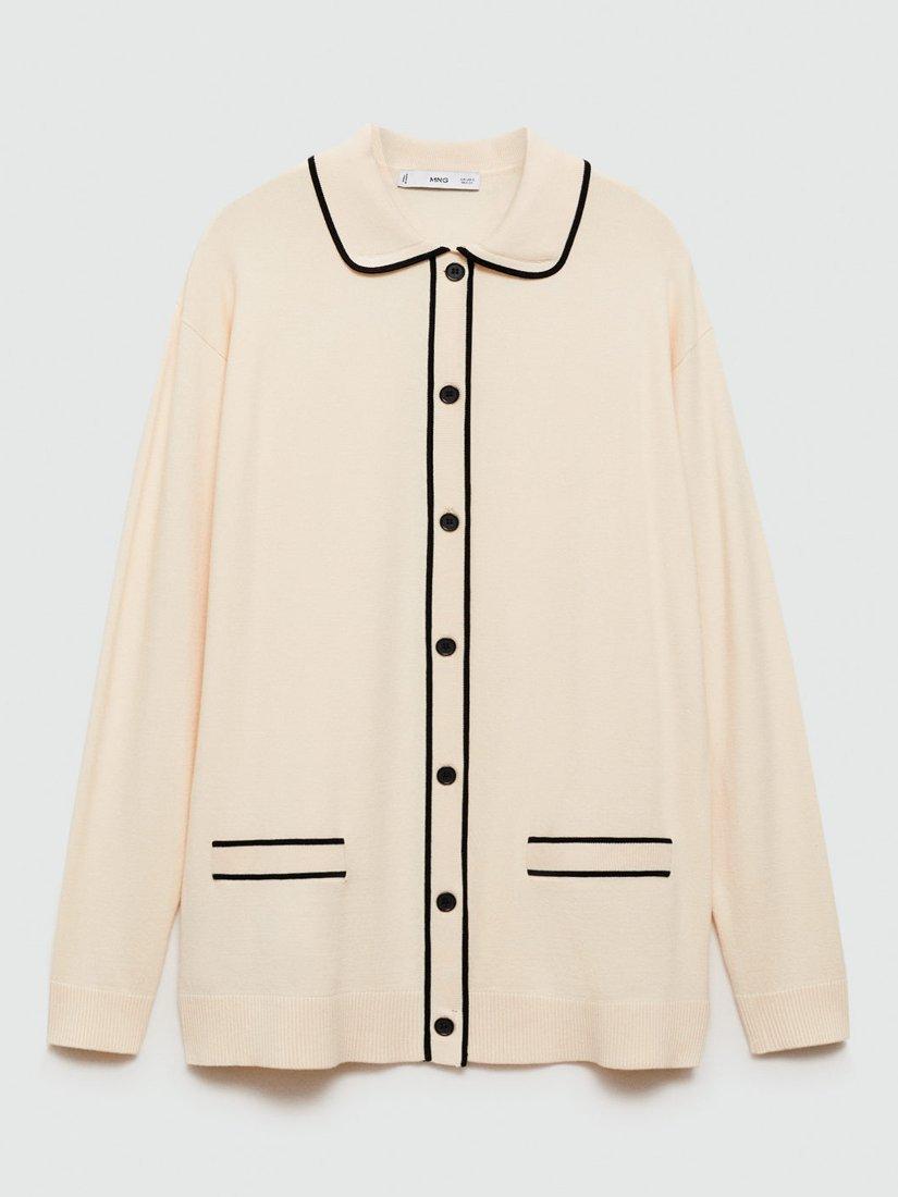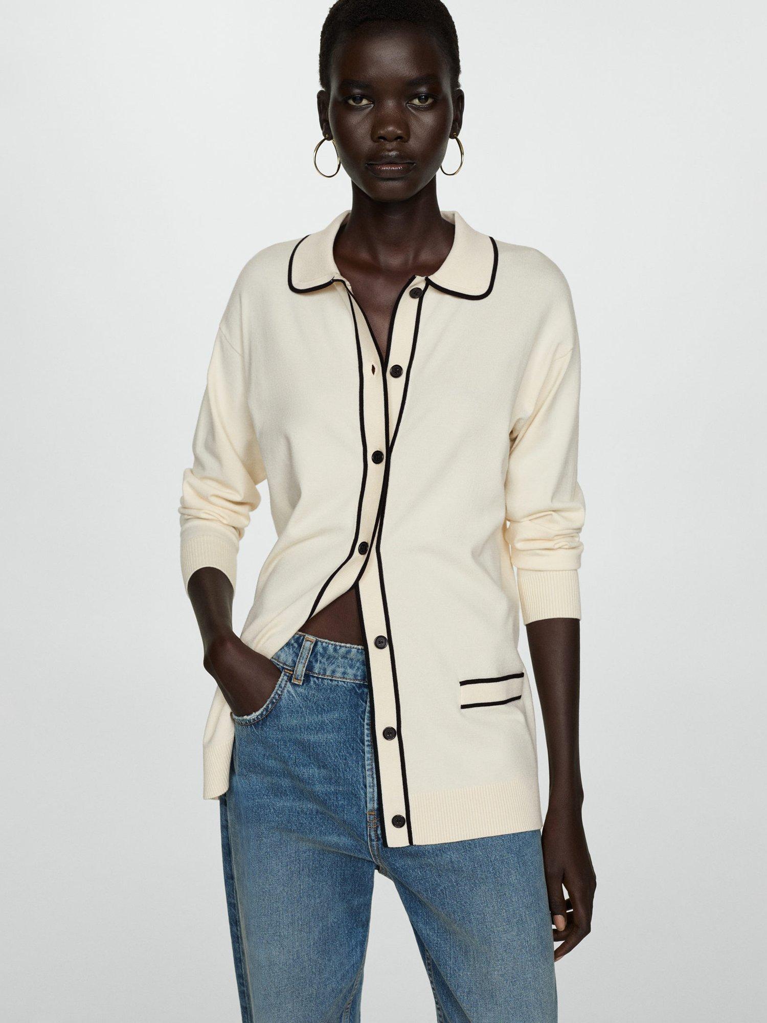 Framed with a neckline that buttons all the way up, this contrast piped longline cardigan from Mango is made from long-lasting fabric that will see you through season after season.