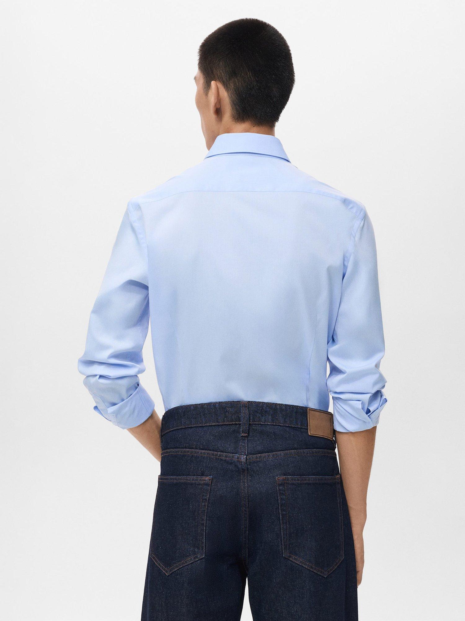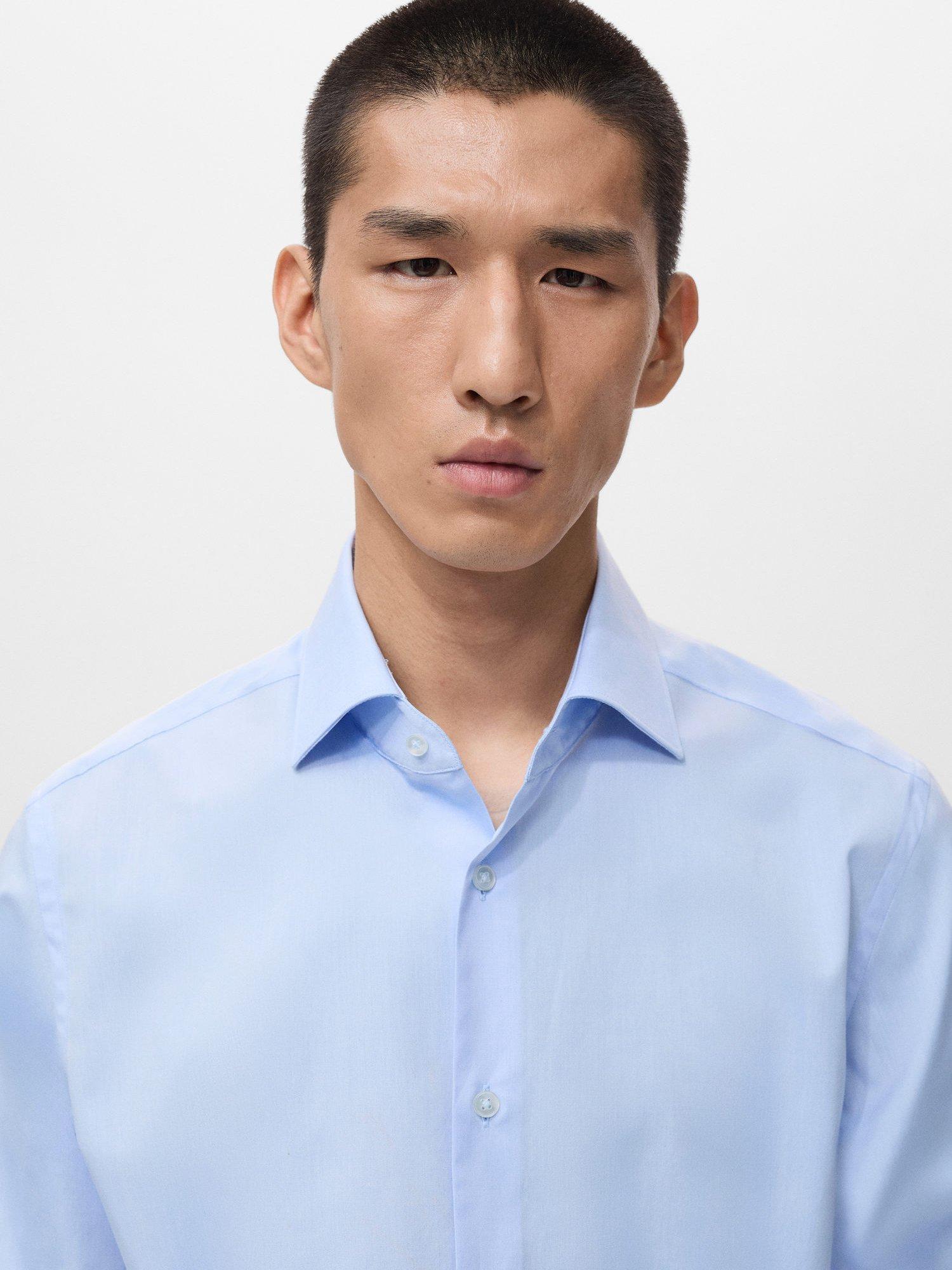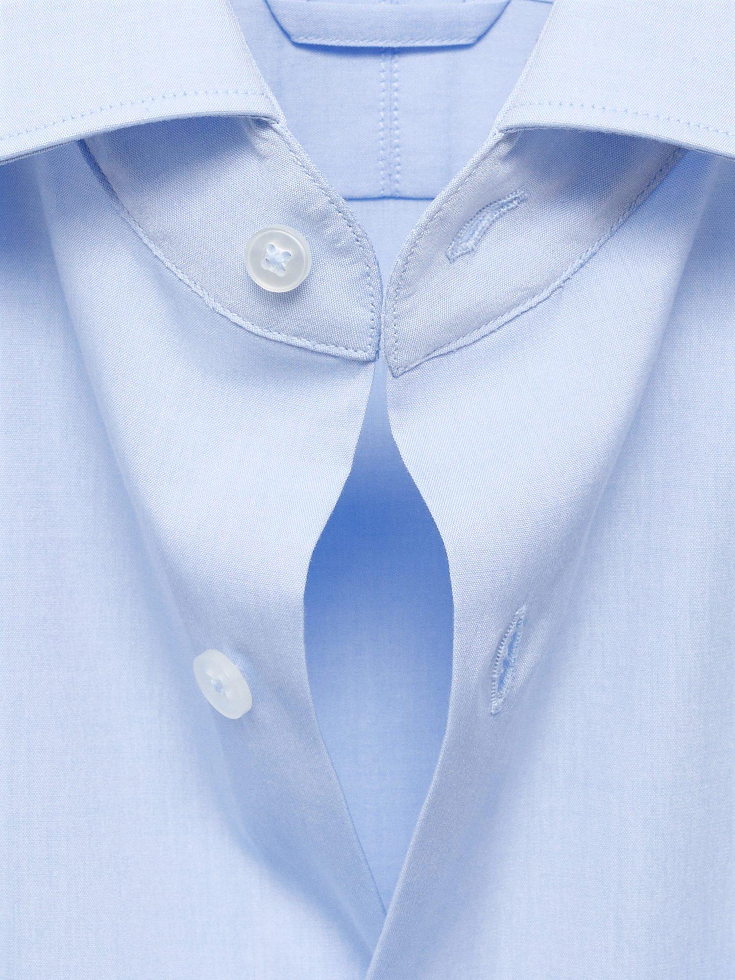 Regular fit cotton shirt with long sleeves and buttoned cuffs. Fastens with a buttoned front and features a spread collar and rounded hem.
