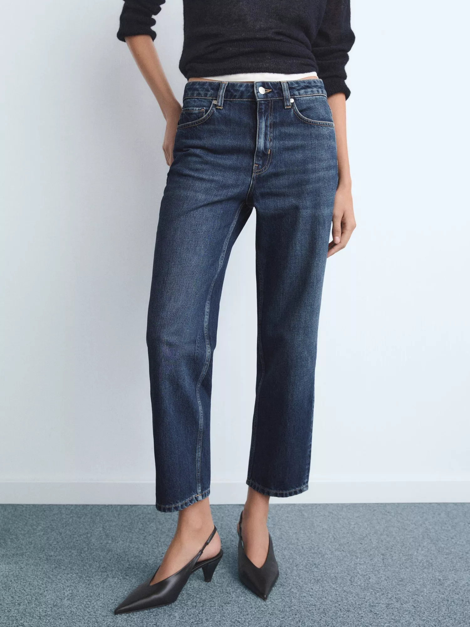 Straight-leg jeans from Mango. Made from pure cotton featuring a mid rise and a button and zip fastening, they fall to a regular length.