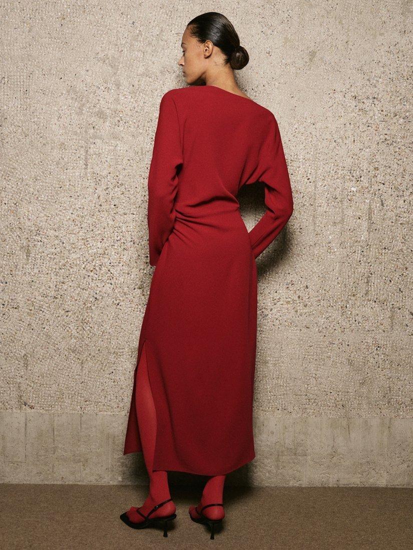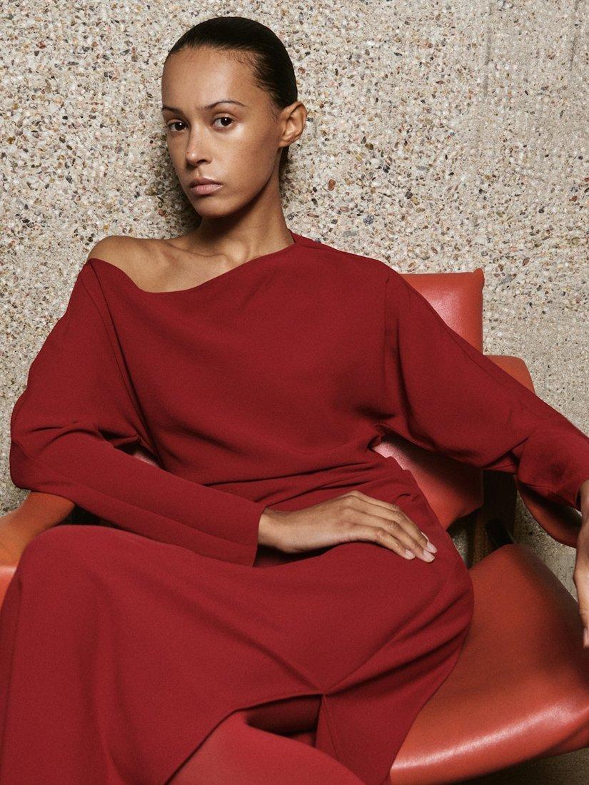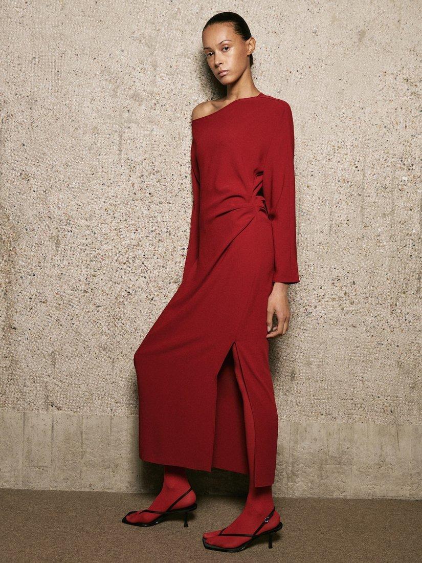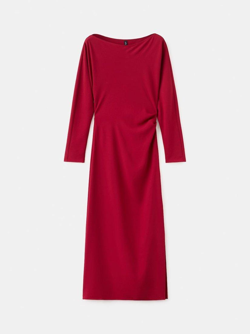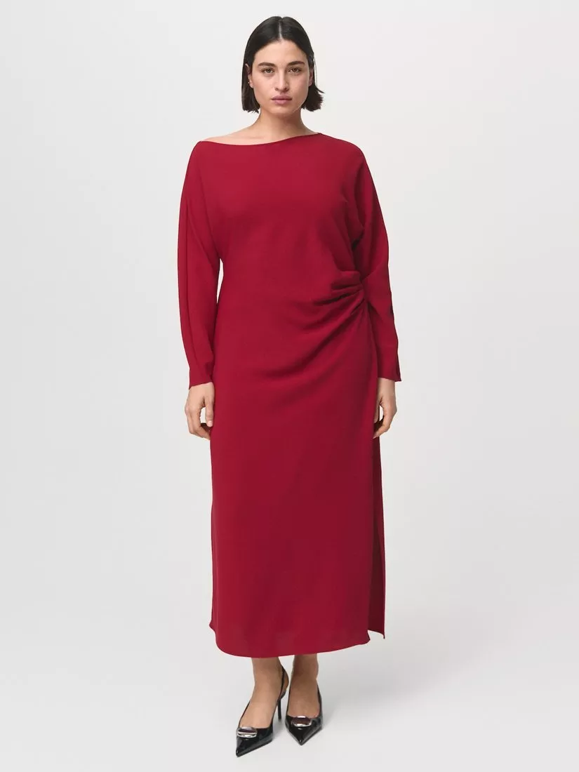 A draped maxi dress by Mango. The boat neck and long sleeves add modern flair while ensuring comfort, while draped waist detail keeps it versatile and striking, easily adapting to your plans.