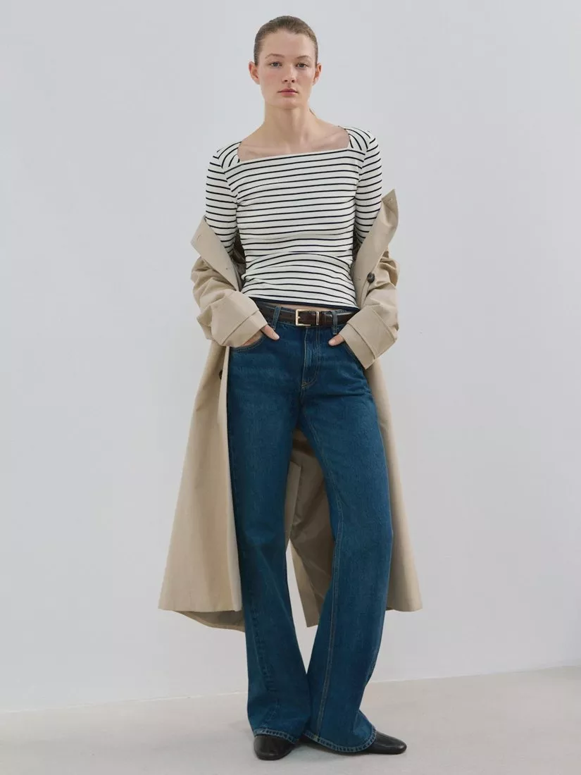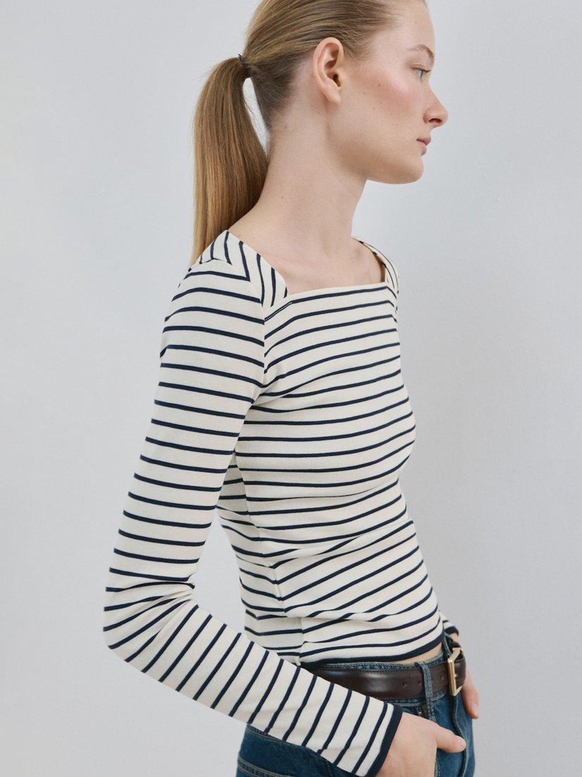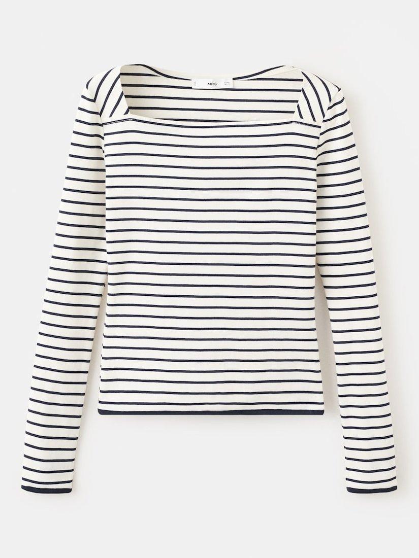 MangoBoat Neck Stripe Knit Top, Off White
