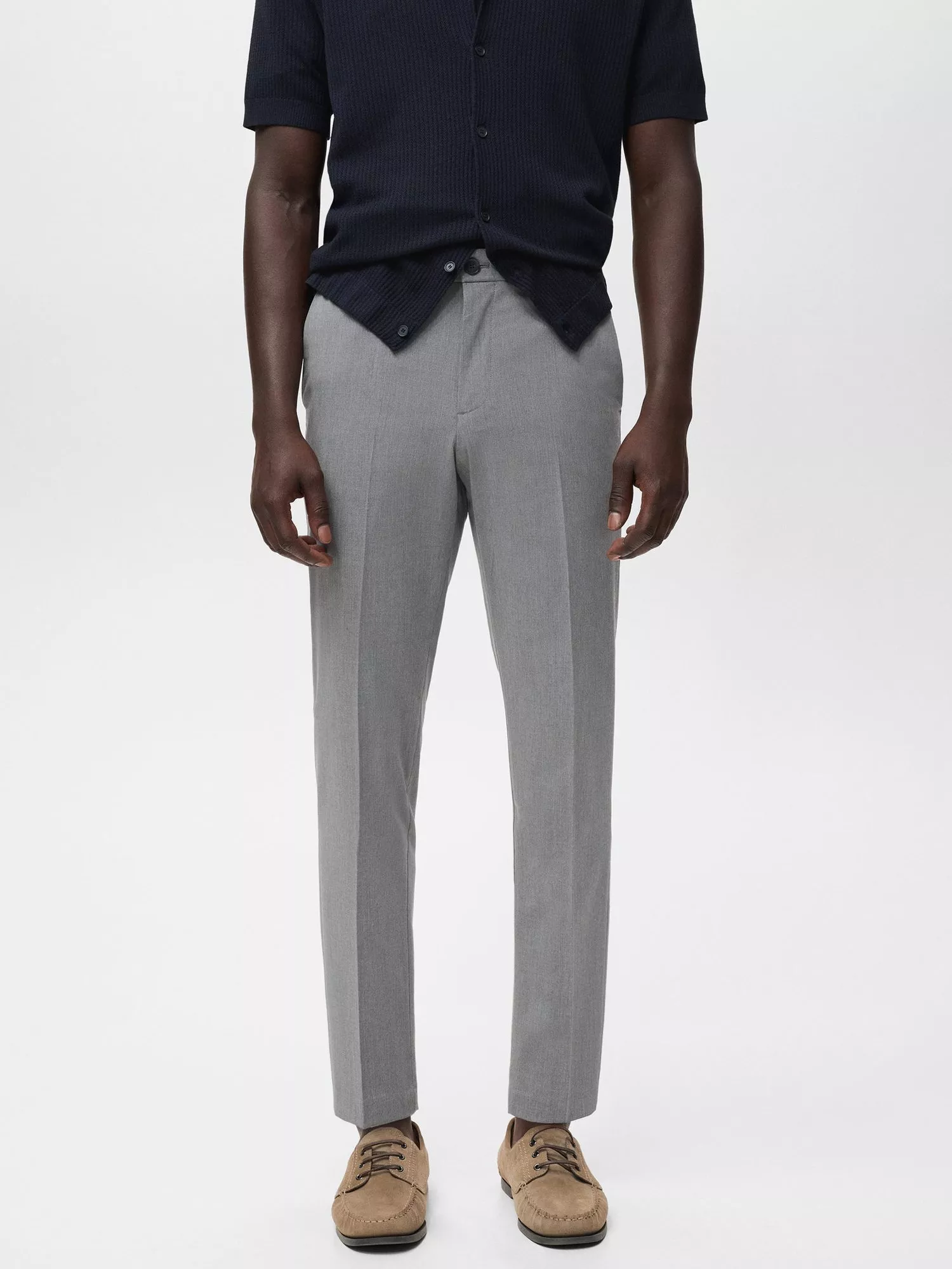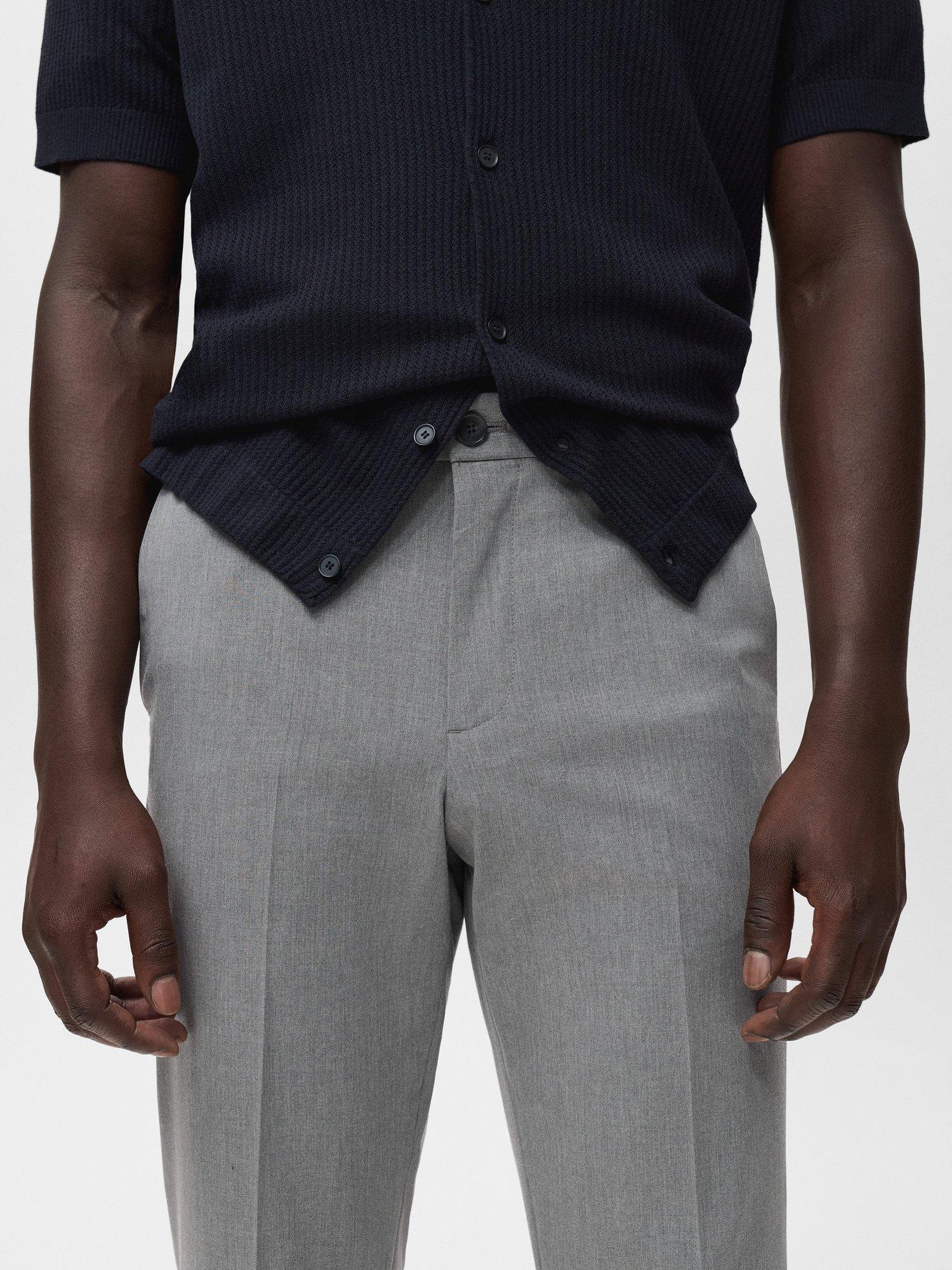 Slim fit, crop design trousers with a coin pocket at hip height. Elastic gathering at the back of the waistband. Two side pockets, Coin pocket, Two welt pockets at the back, Zip and button fastening, Belt loops.