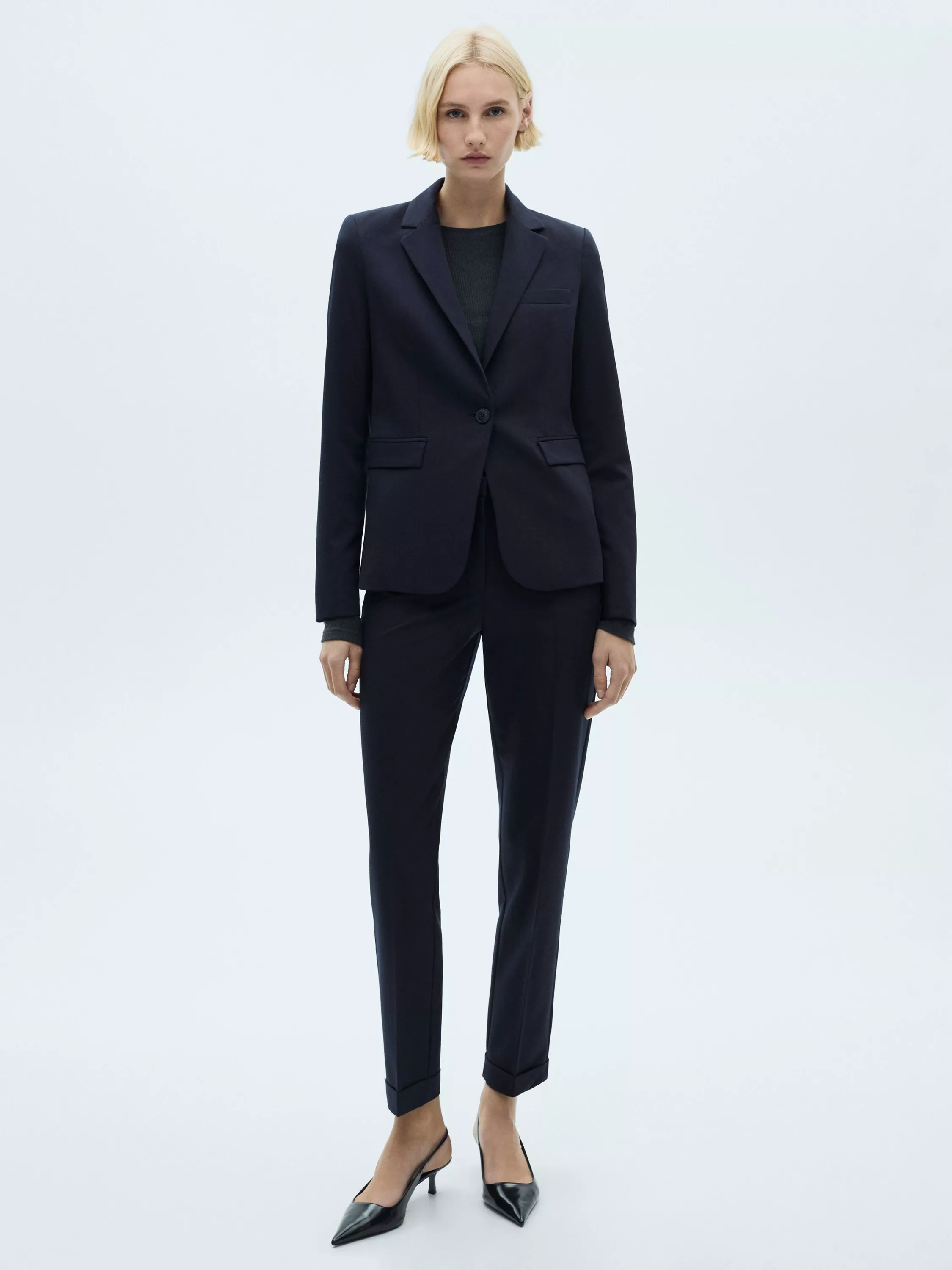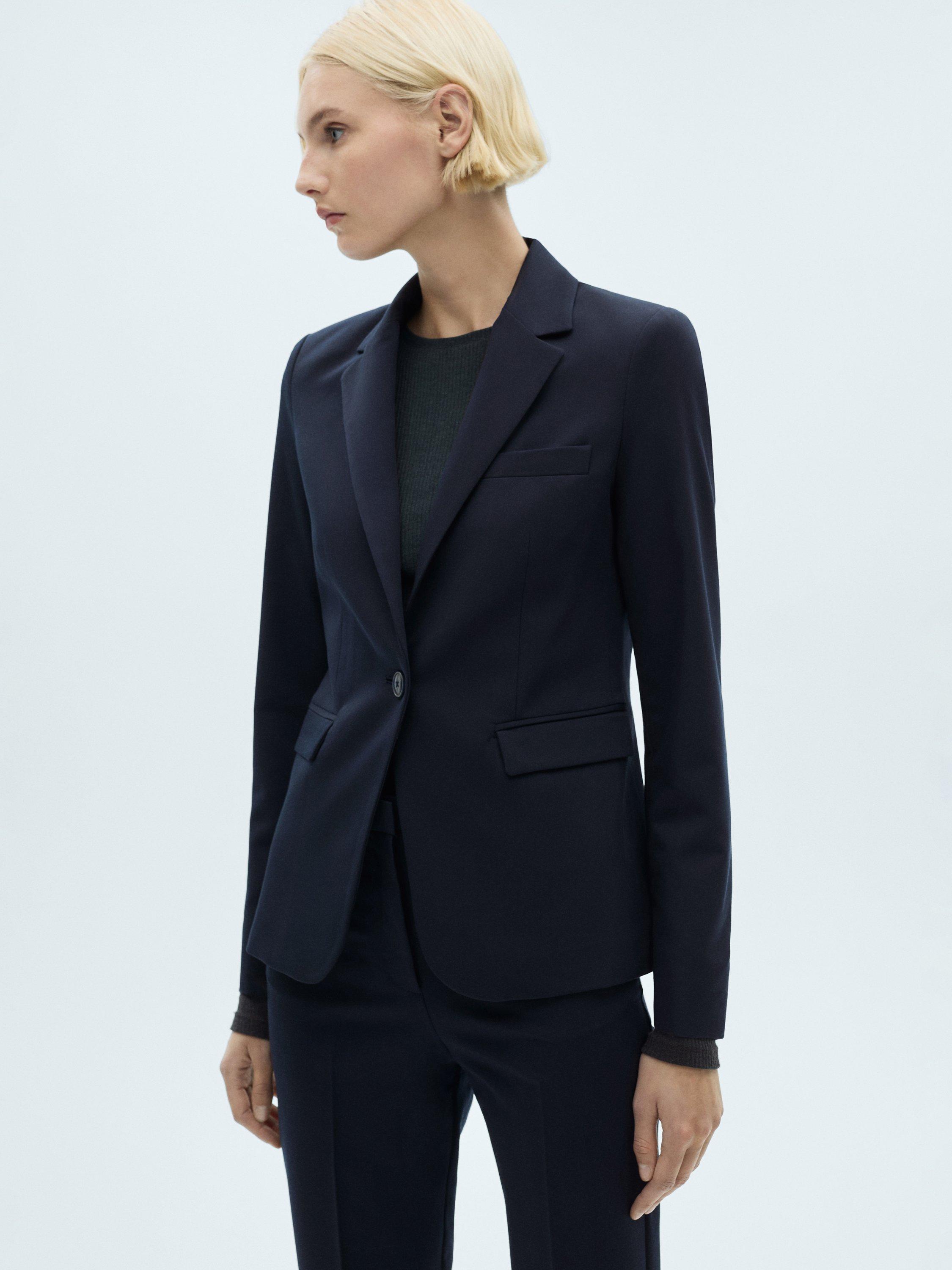 - COMPOSITION: 76% POLYESTER, 18% VISCOSE, 6% ELASTANE. LINING: 55% POLYESTER, 45% VISCOSE. SLEEVE LINING: 100% POLYESTER. PIPING: 100% POLYESTER.