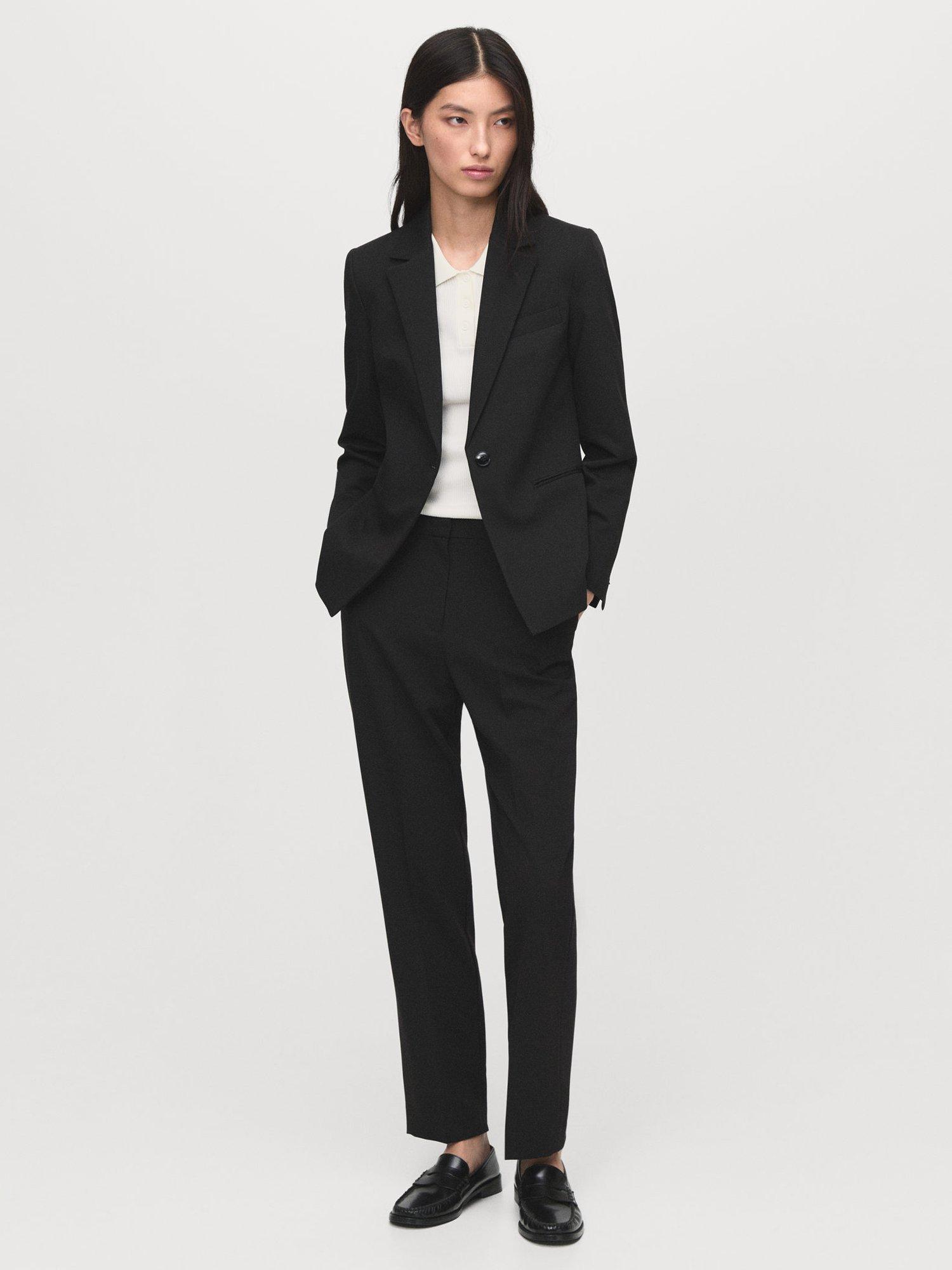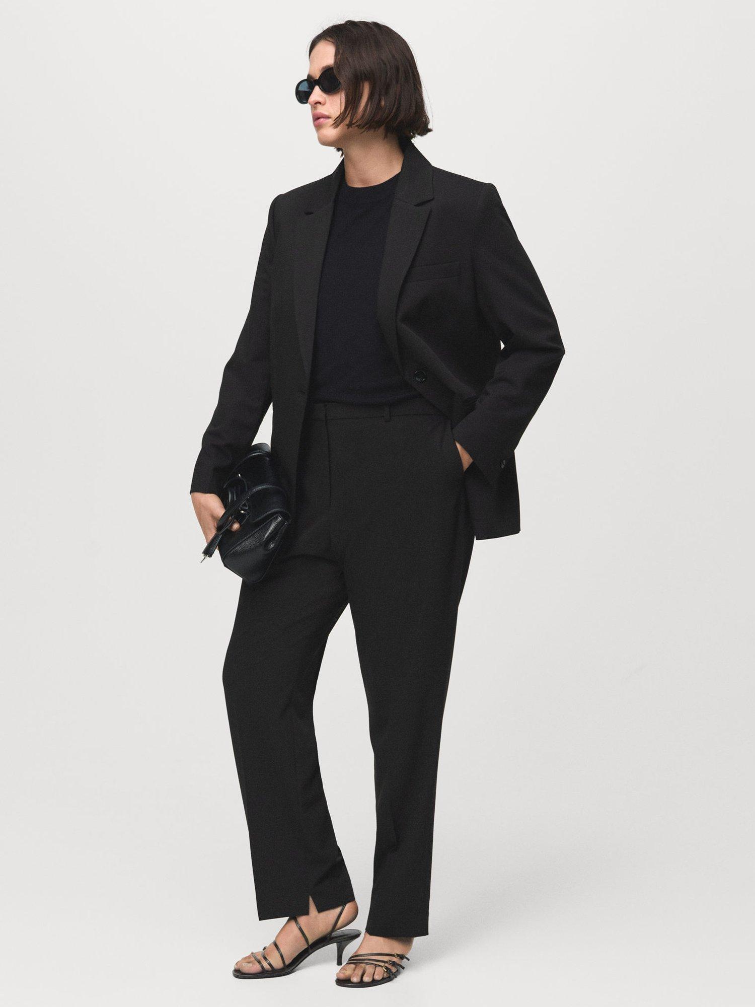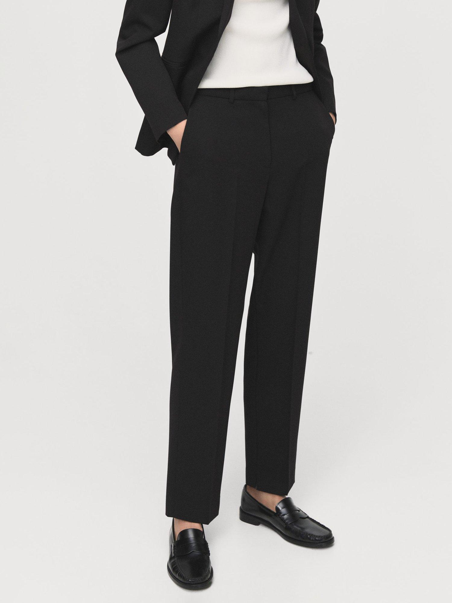A pair of straight leg trousers from Mango. They are designed to sit mid rise with a zip fastening and hems that fall to a regular length.