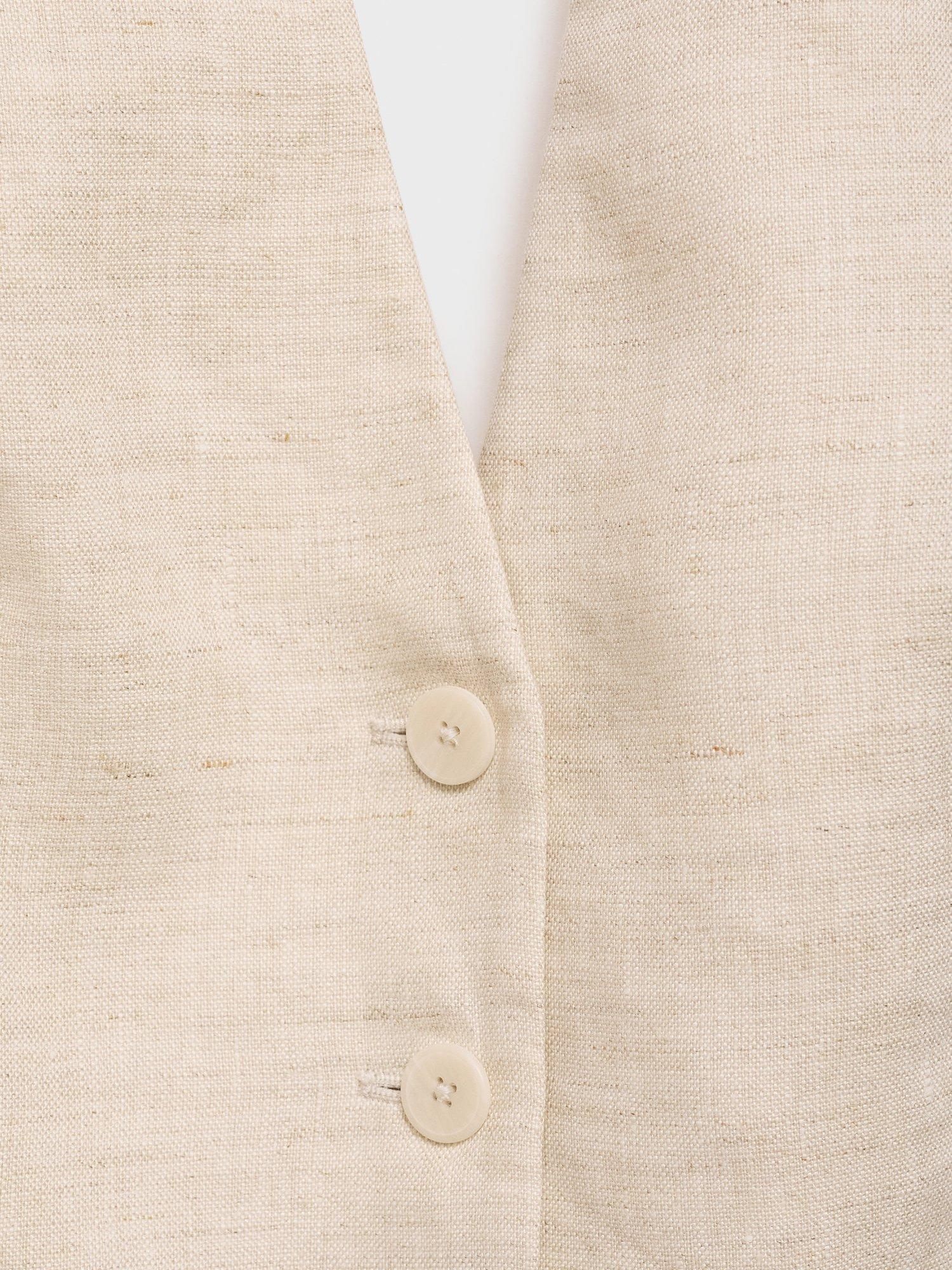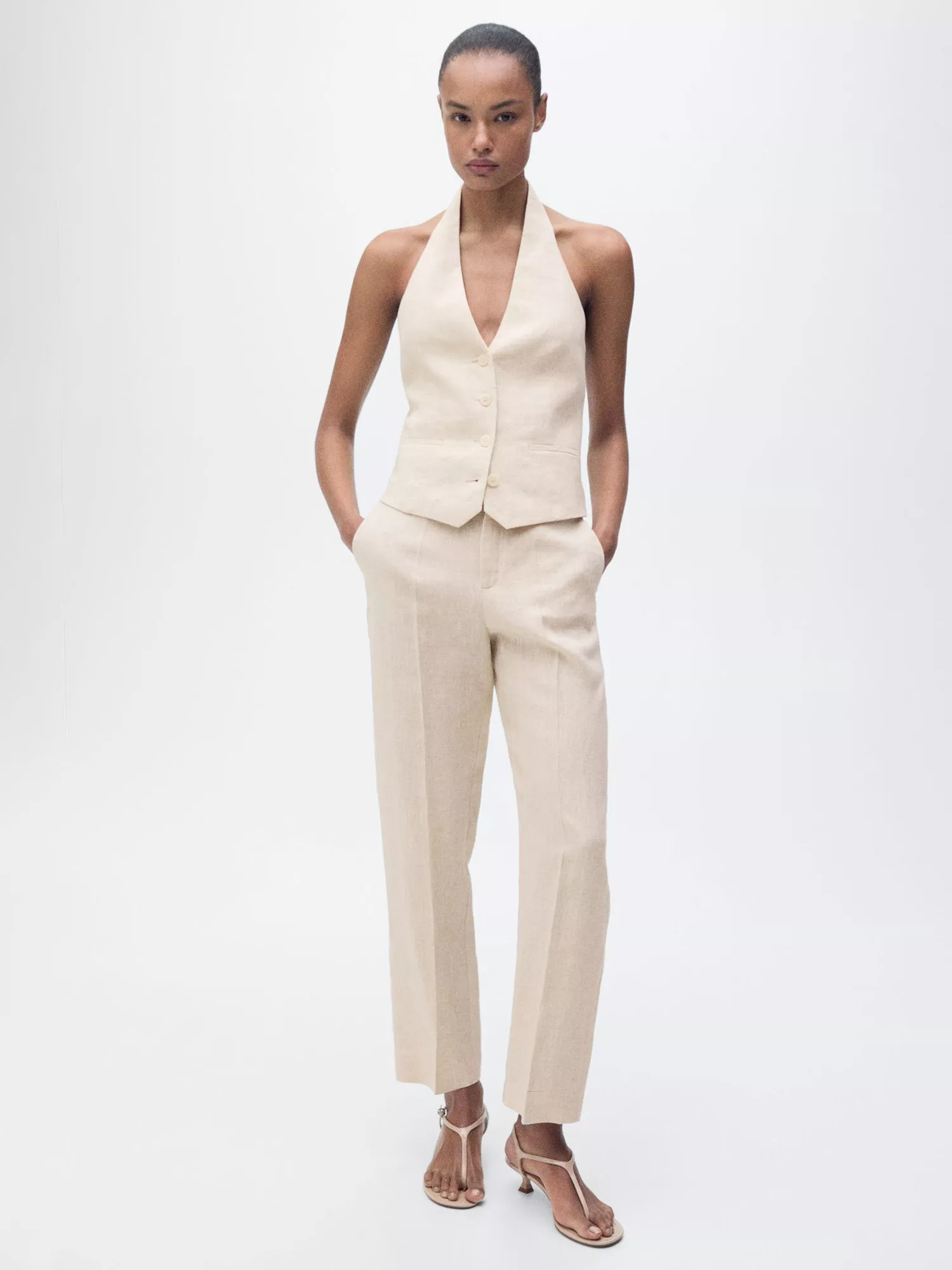 Elevate your work wardrobe with this linen waistcoat from Mango. Its tailored V-neck cut and soft cotton lining promise comfort with a modern edge, perfectly balancing practicality and personality for confident everyday style.