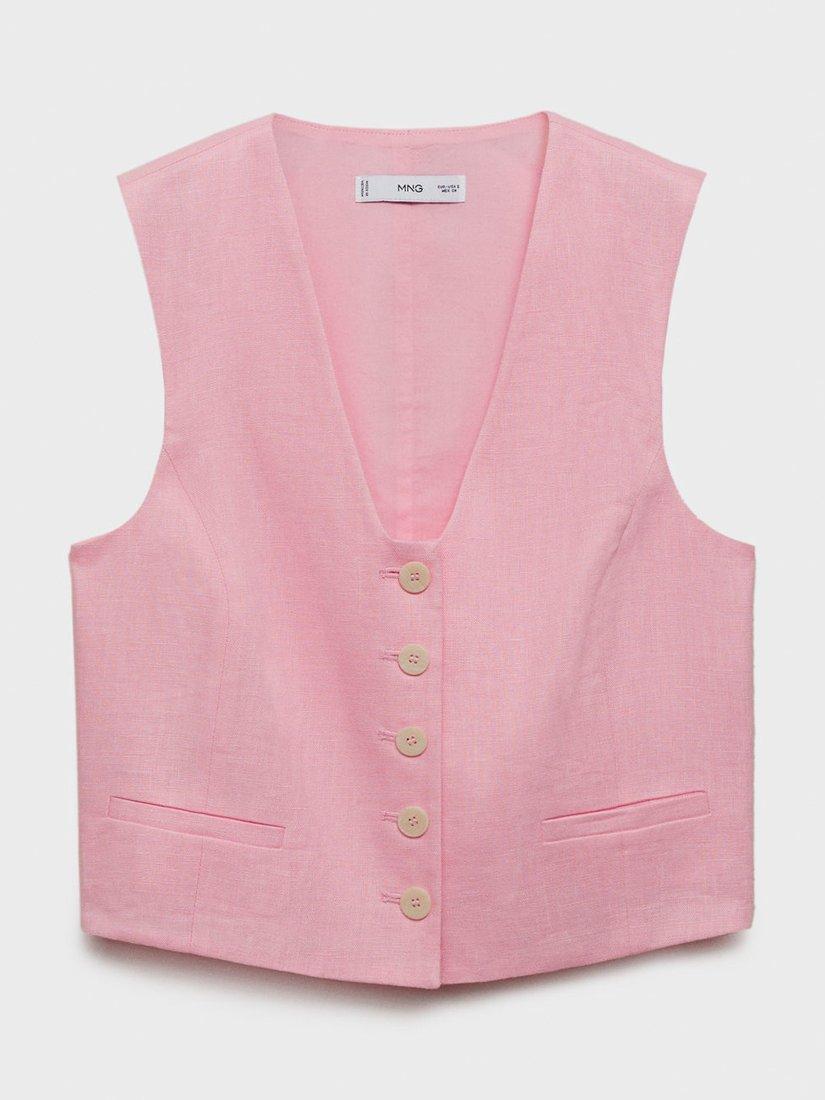 Elevate your work wardrobe with this linen waistcoat from Mango. Its tailored V-neck cut and soft cotton lining promise comfort with a modern edge, perfectly balancing practicality and personality for confident everyday style.