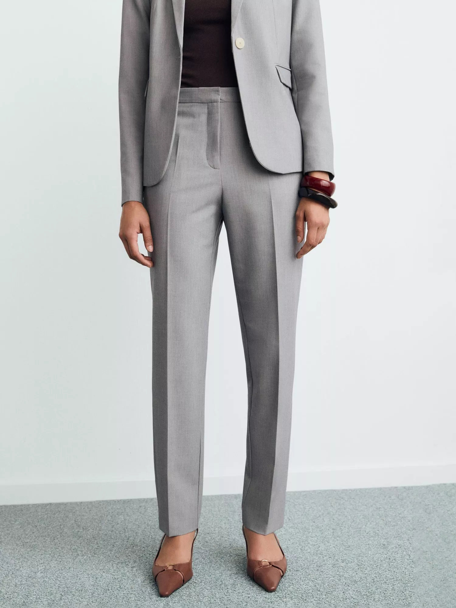 Where low-key structure meets everyday edge - a pair of straight-leg tailored trousers from Mango. This style is cut to sit mid rise with a concealed zip and hook and eye fastening and hems that fall to a regular length.