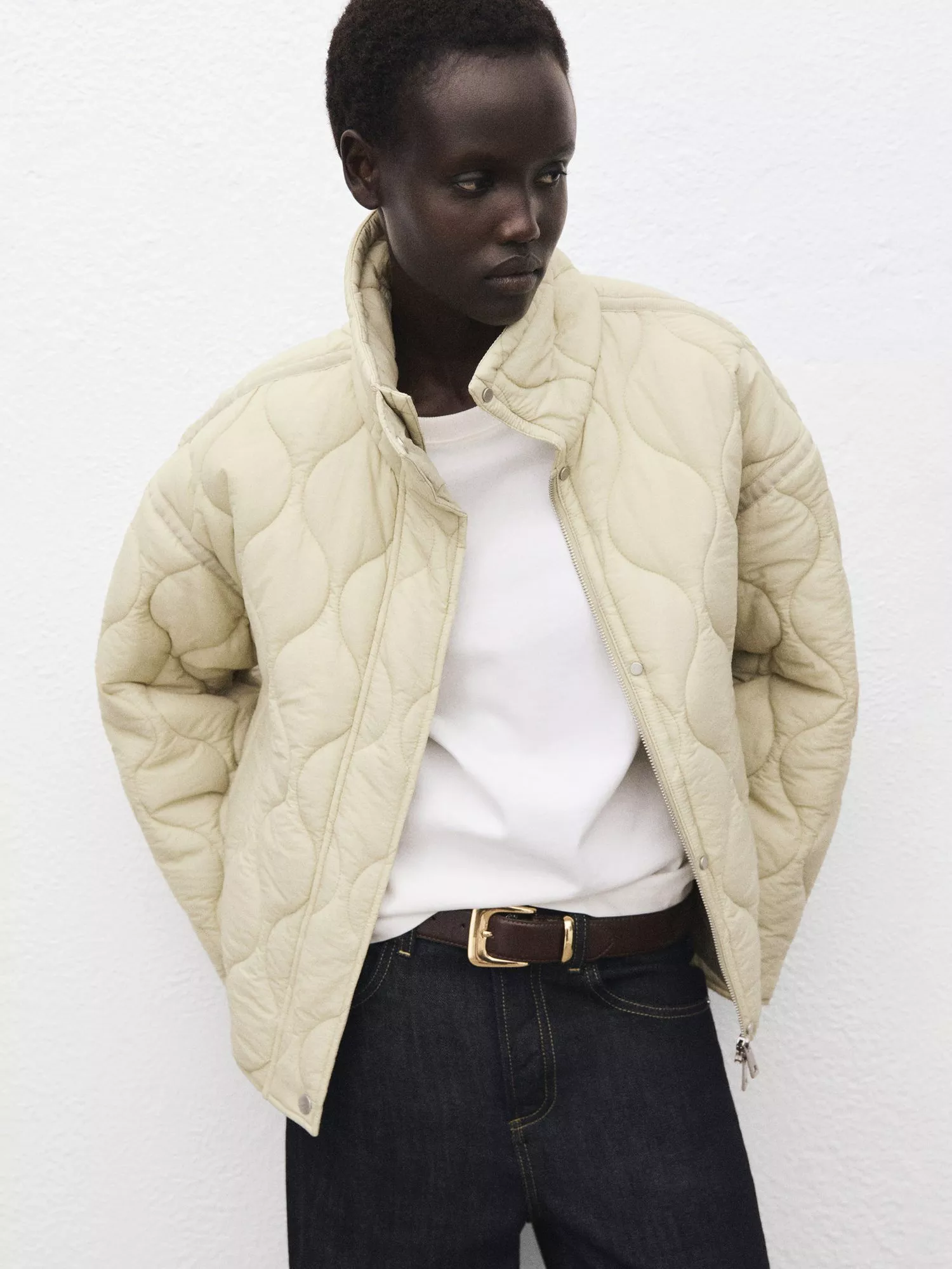 This quilted jacket keeps you warm and comfortable on casual days. Its high neck and long sleeves offer extra coverage, while the lined design and practical fastenings make it easy to wear on your next outing.