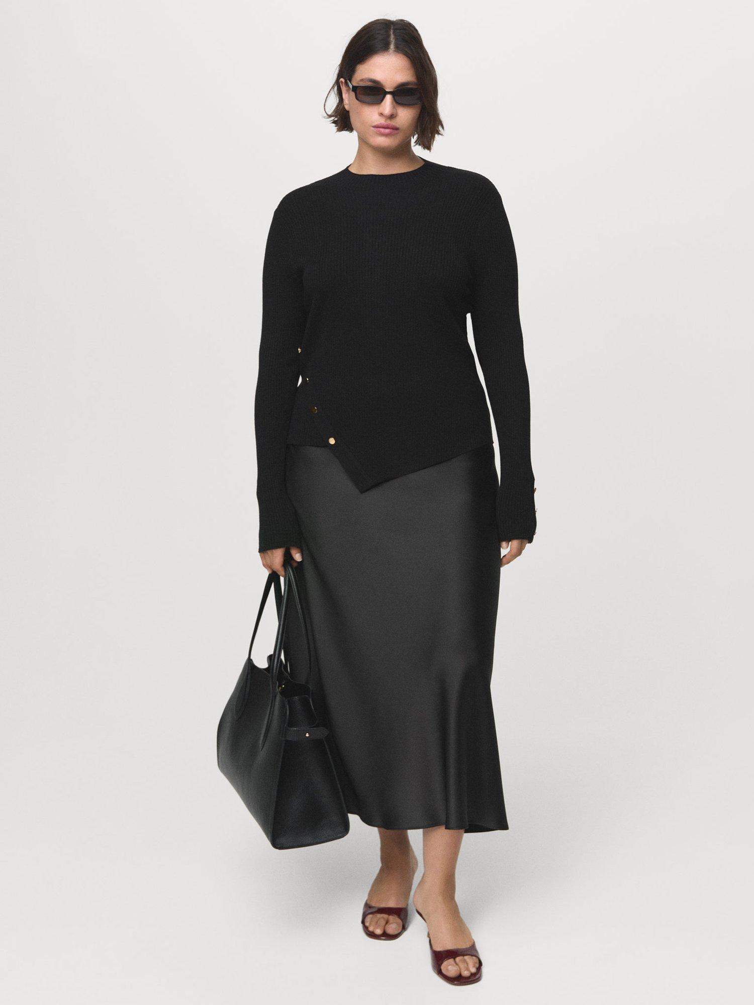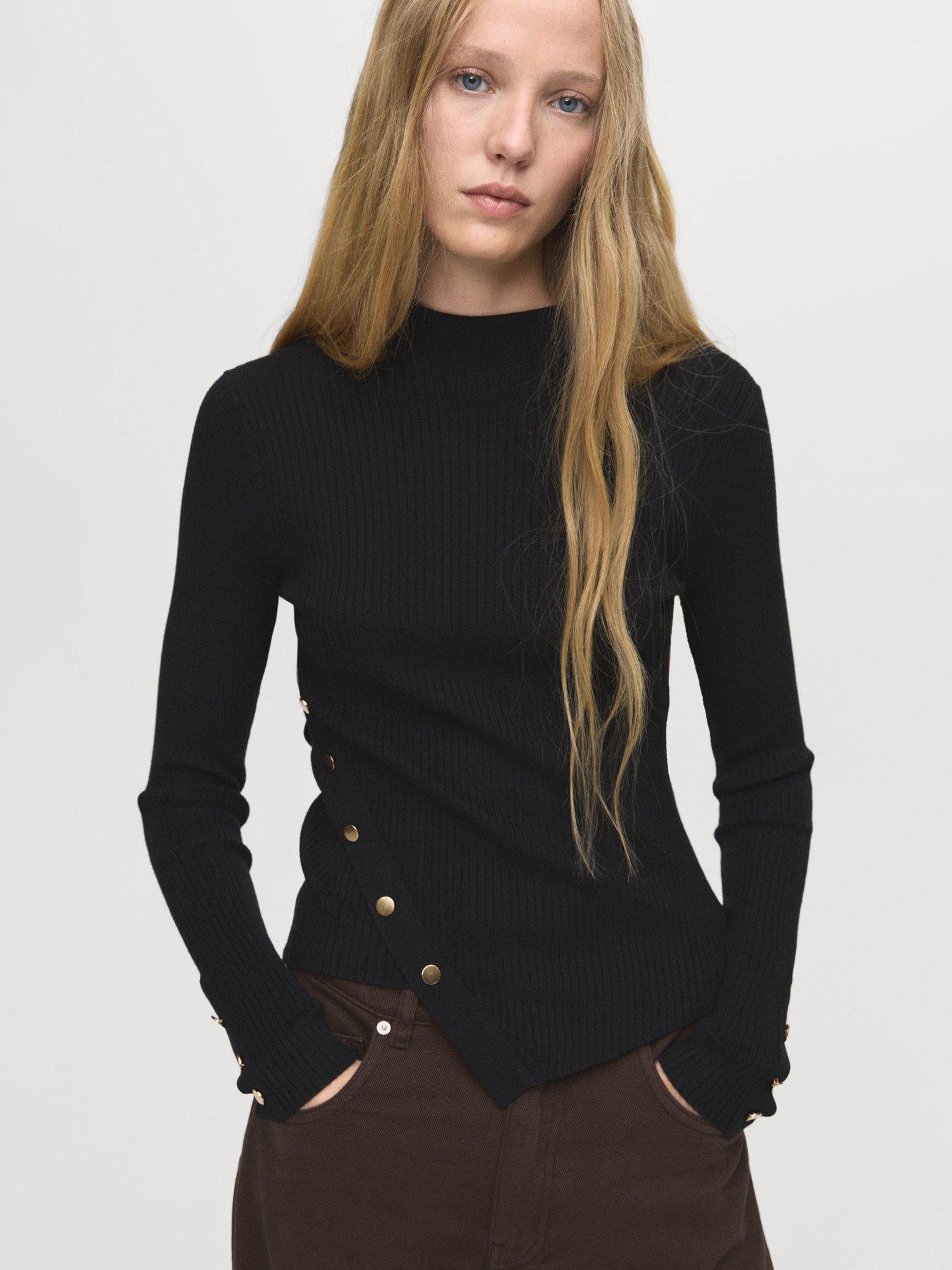 Framed by a high neckline and long sleeves, this fine jumper from Mango makes for lightweight wear in a smooth fabric.