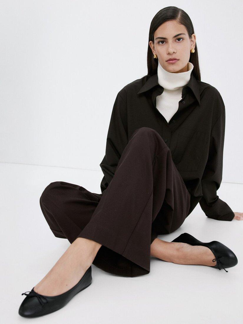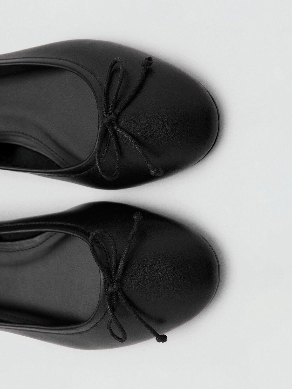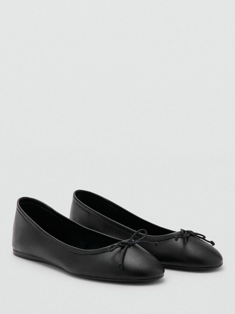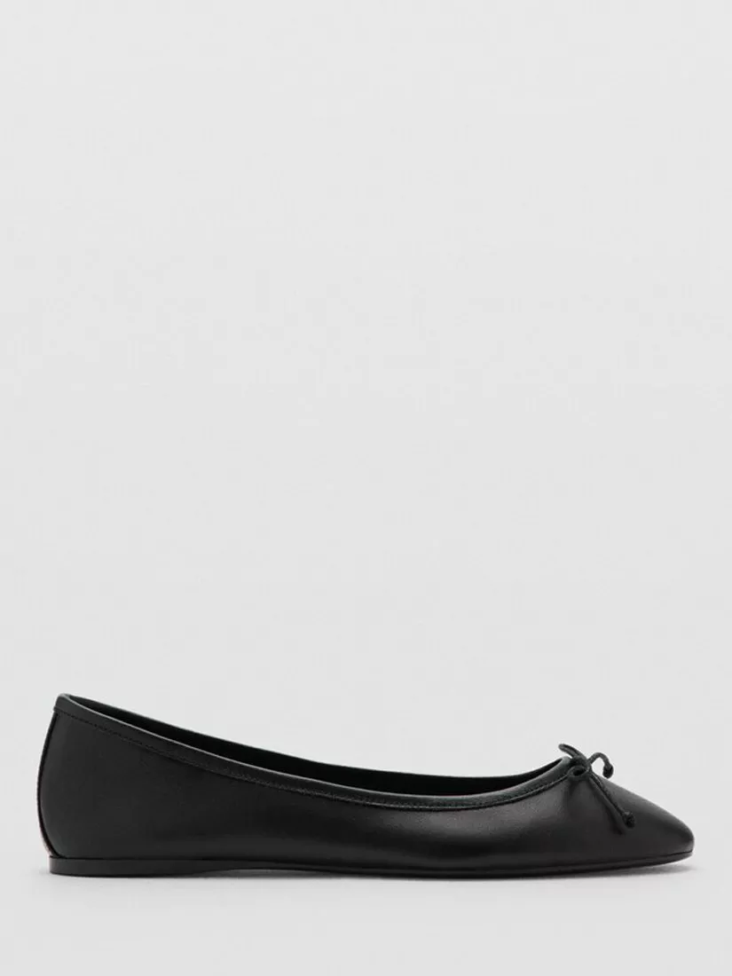 With a low-profile ballet silhouette that's softly contoured for all-day comfort, this pair of pumps from Mango is fashioned from leather and finished with a bow detail.