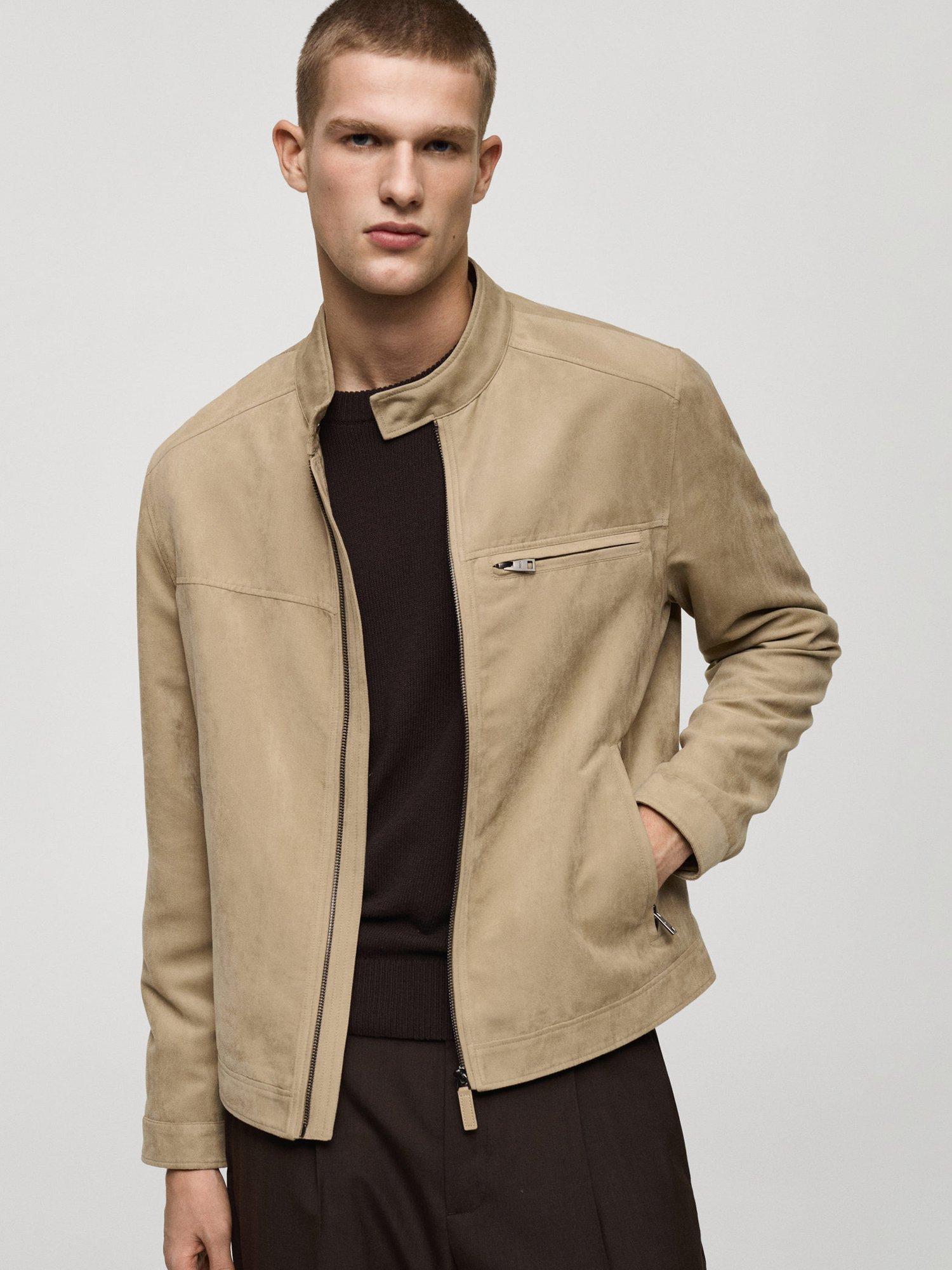 MangoBoy Suede Effect Biker Jacket, Beige