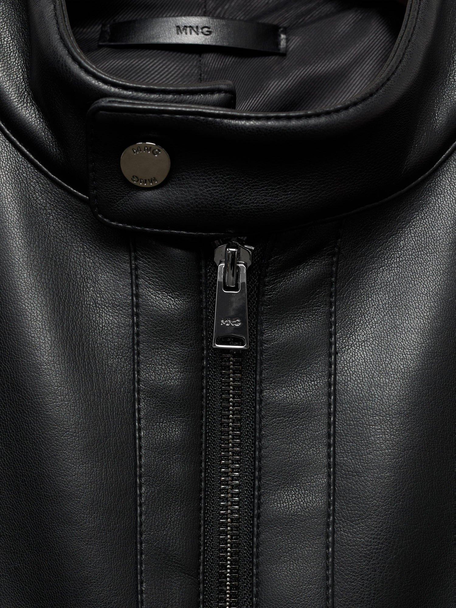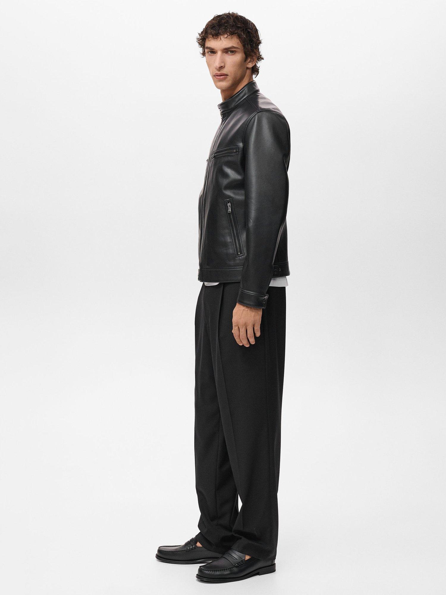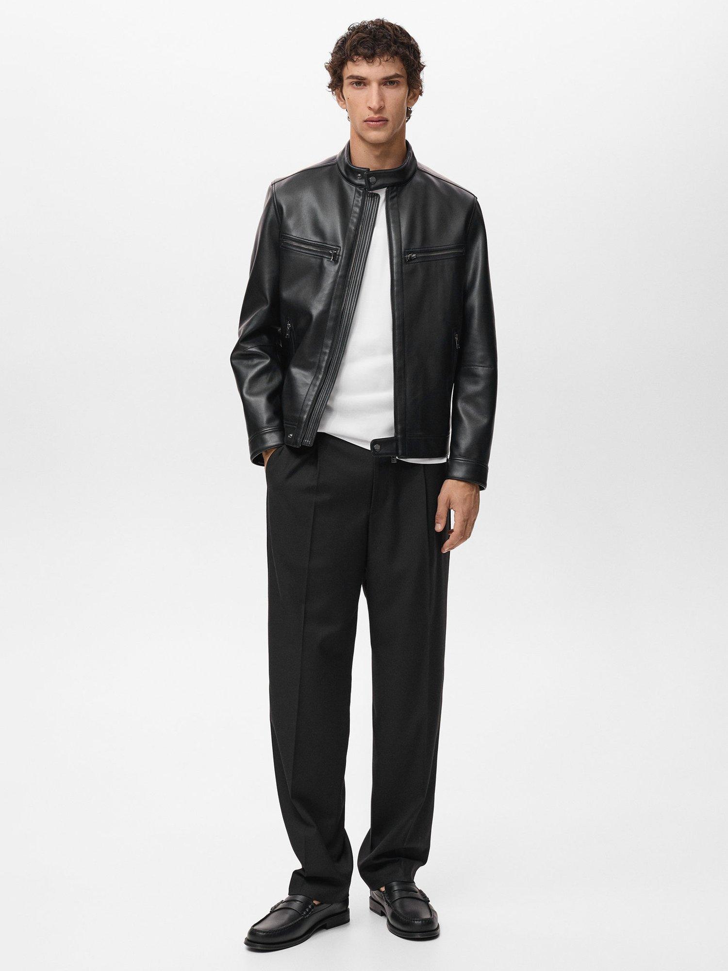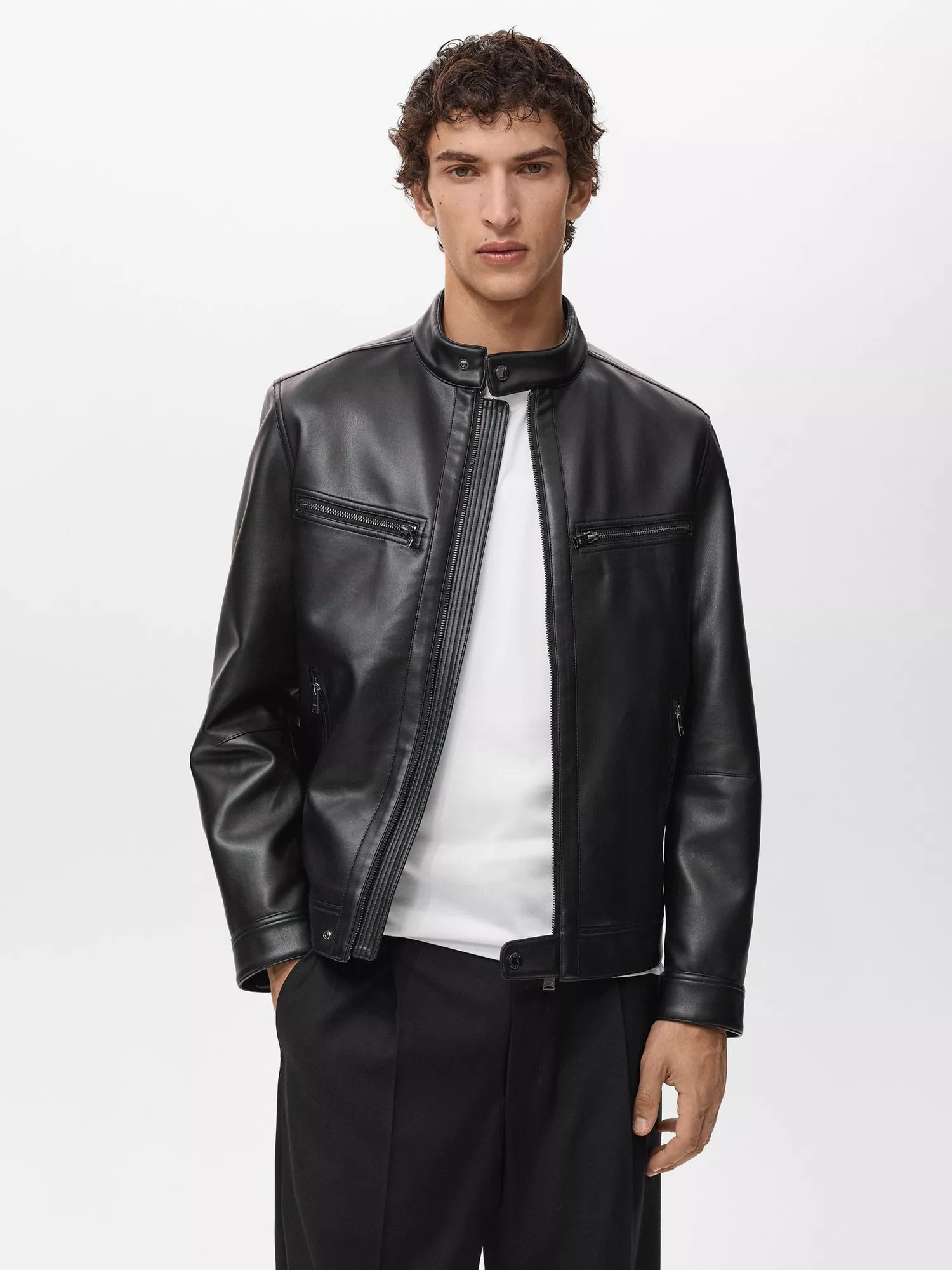 A classic biker jacket with a zip-fastened front and various pockets that give the design an even more rugged feel.