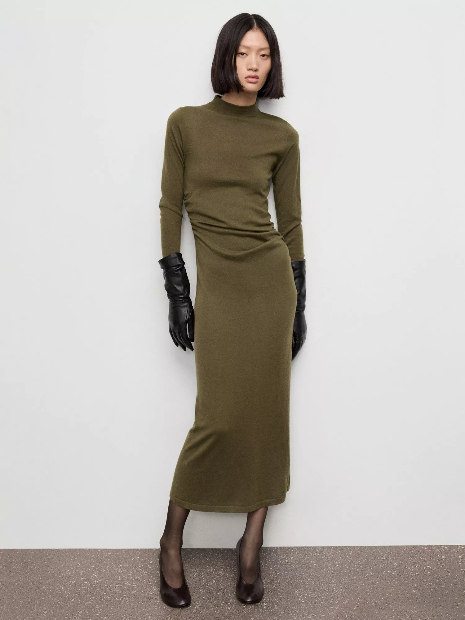 This A-line midi dress keeps you comfortable and confident all day. The high neck and long sleeves offer a modern touch, while it's simple design makes it easy to style for any plan you have in mind.