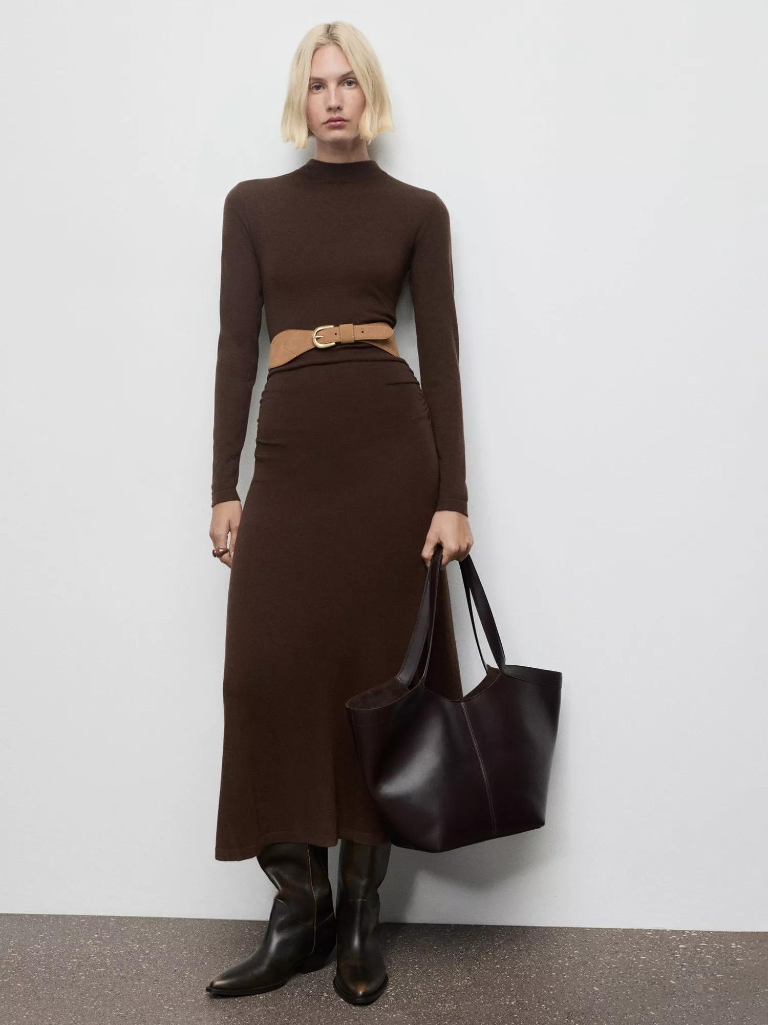 This A-line midi dress keeps you comfortable and confident all day. The high neck and long sleeves offer a modern touch, while it's simple design makes it easy to style for any plan you have in mind.