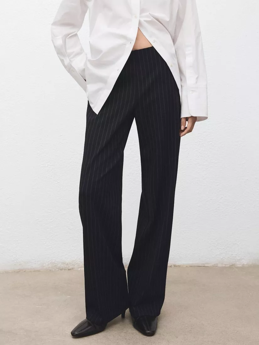 Where low-key structure meets everyday edge - a pair of straight-leg trousers from Mango. This style is cut to sit mid rise with a button and zip fly, stripes and hems that fall to a regular length.