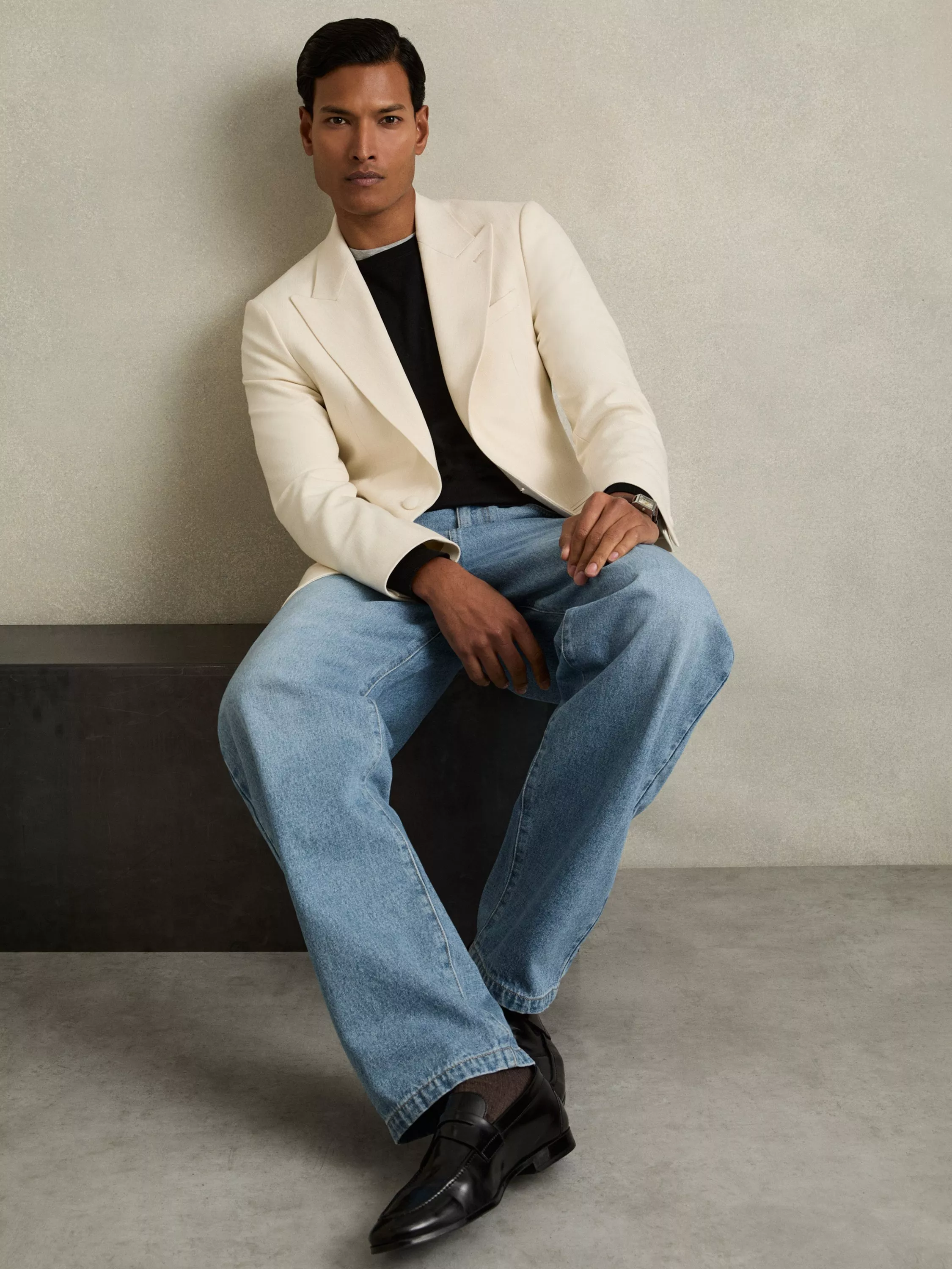- Menswear Model is 6ft 2” and is wearing a size 38/M/32