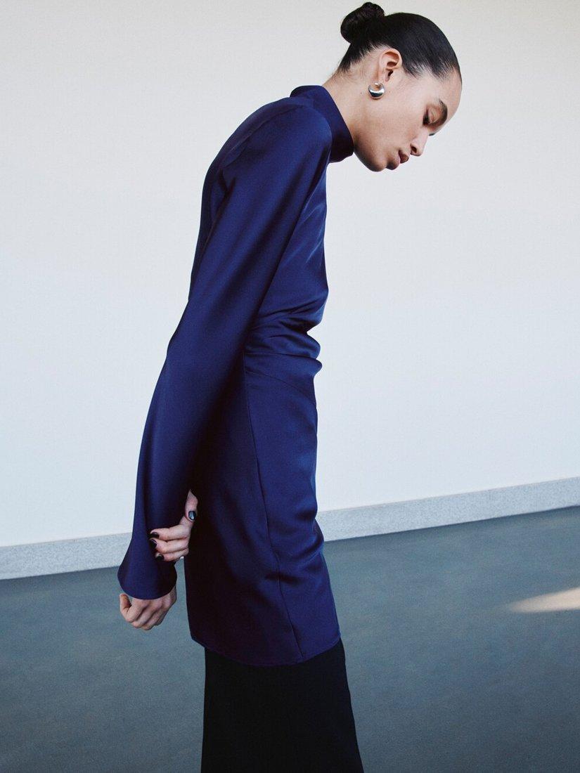 A ruched satin mini dress by Mango. Its high neck and long sleeves offer a modern look, while clever detailing ensures you stand out and feel at ease.