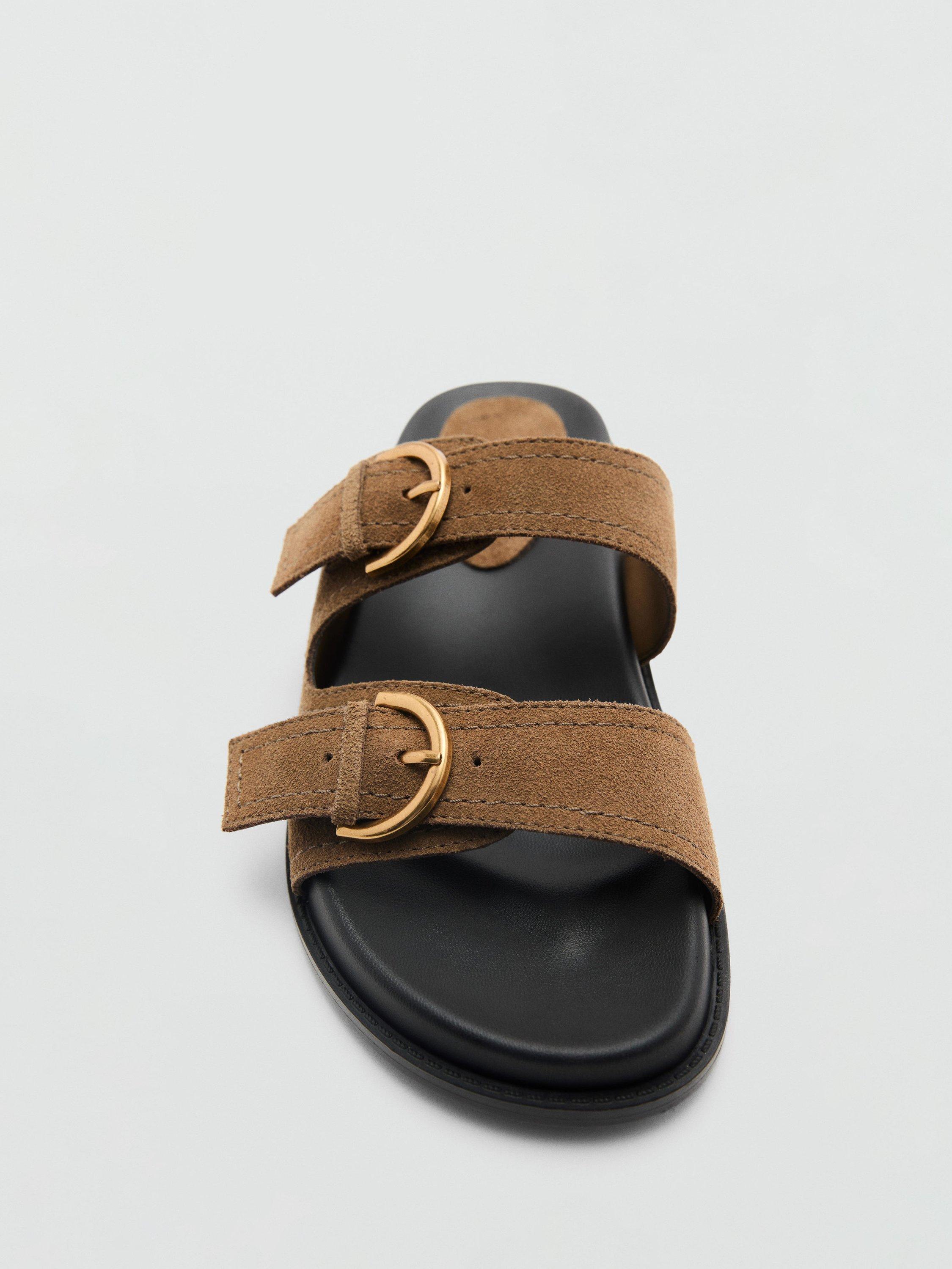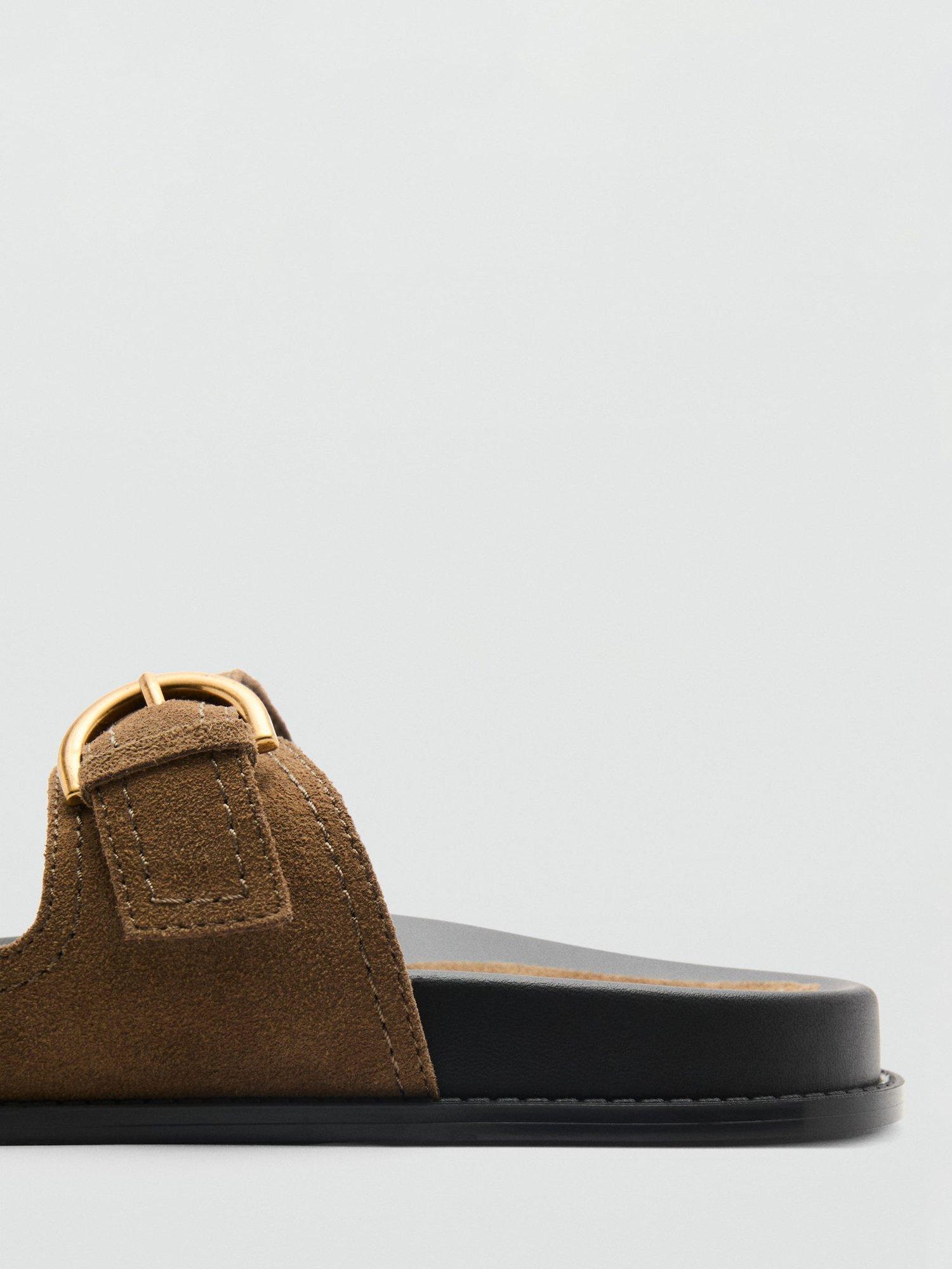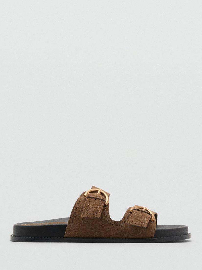 Mango adds polished buckles to soft suede uppers to create a comfortable pair of open-toe sandals that also delivers in the aesthetic department.