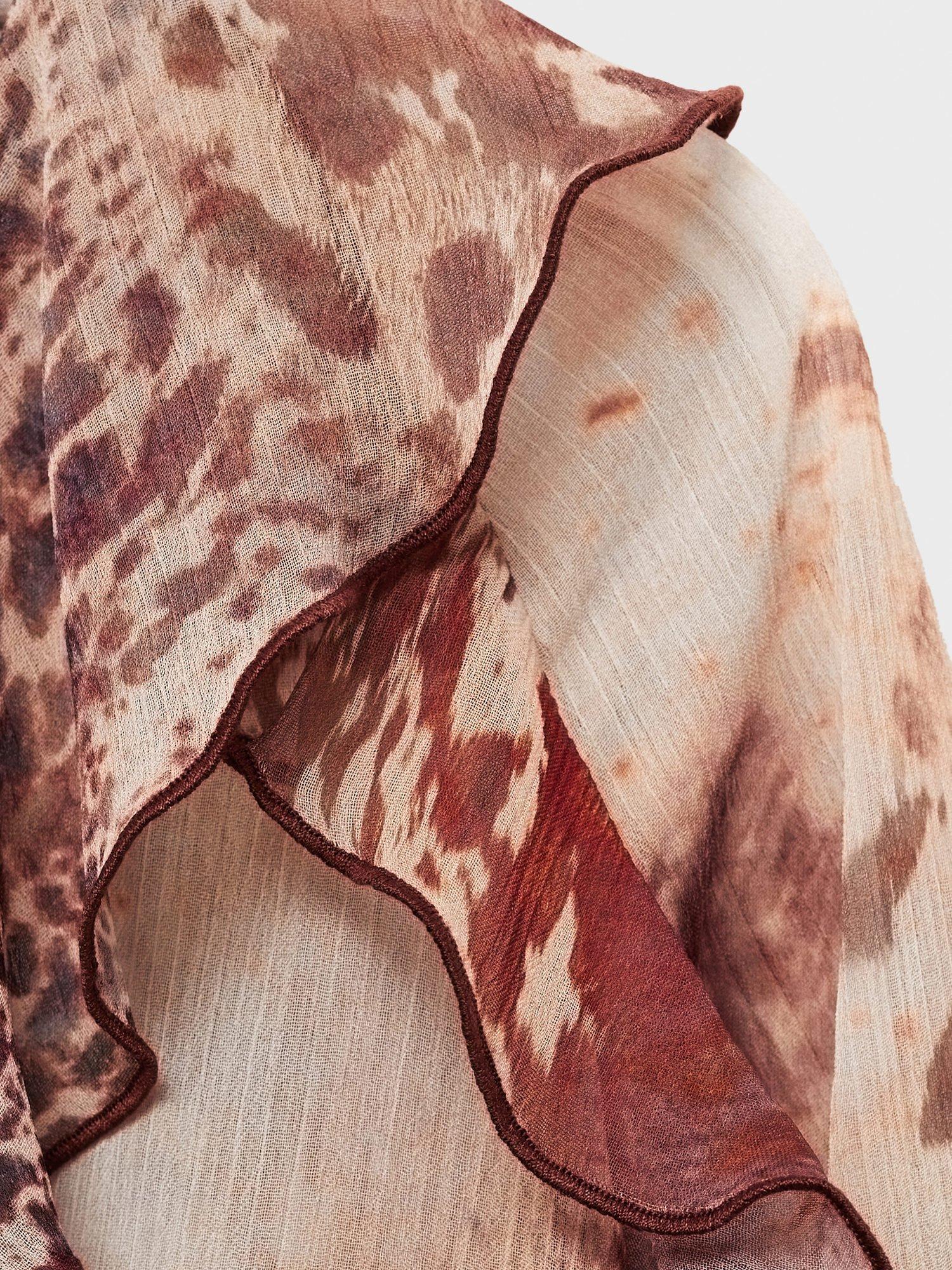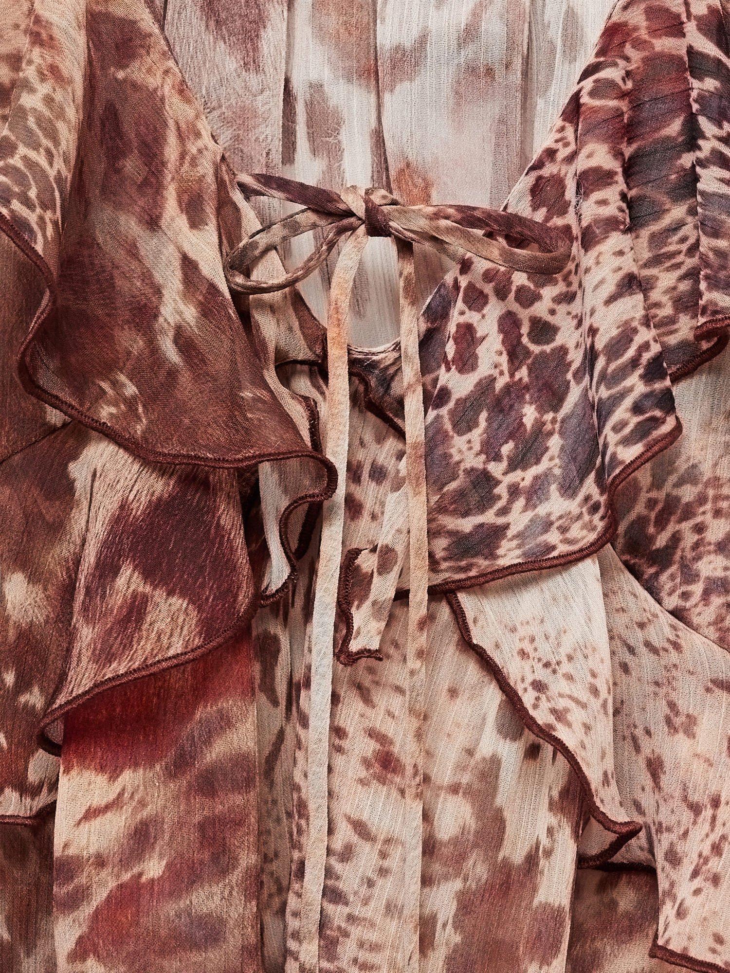 MangoButcher Ruffle Animal Print Blouse, Brown