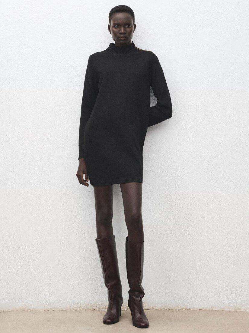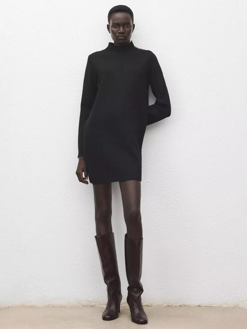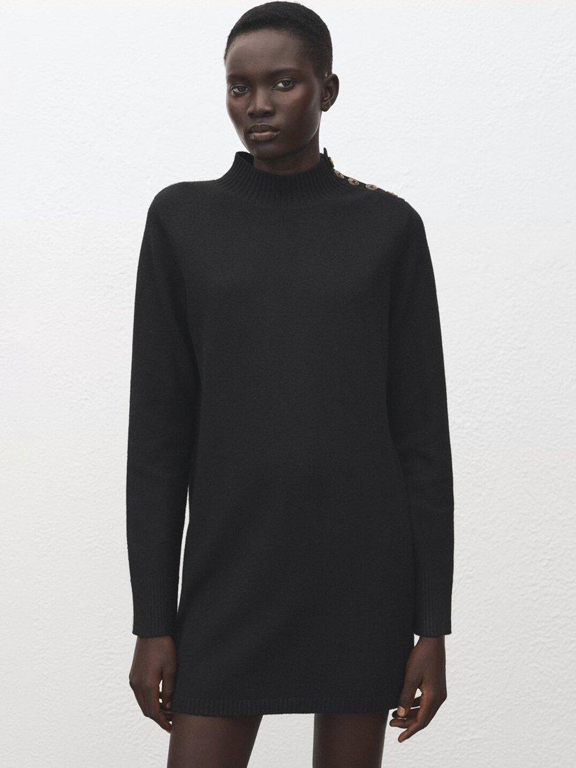 A mini jumper dress by Mango. With a high funnel neck and button-detailed shoulders, it's easy to wear and perfect for when you want comfort and style combined.