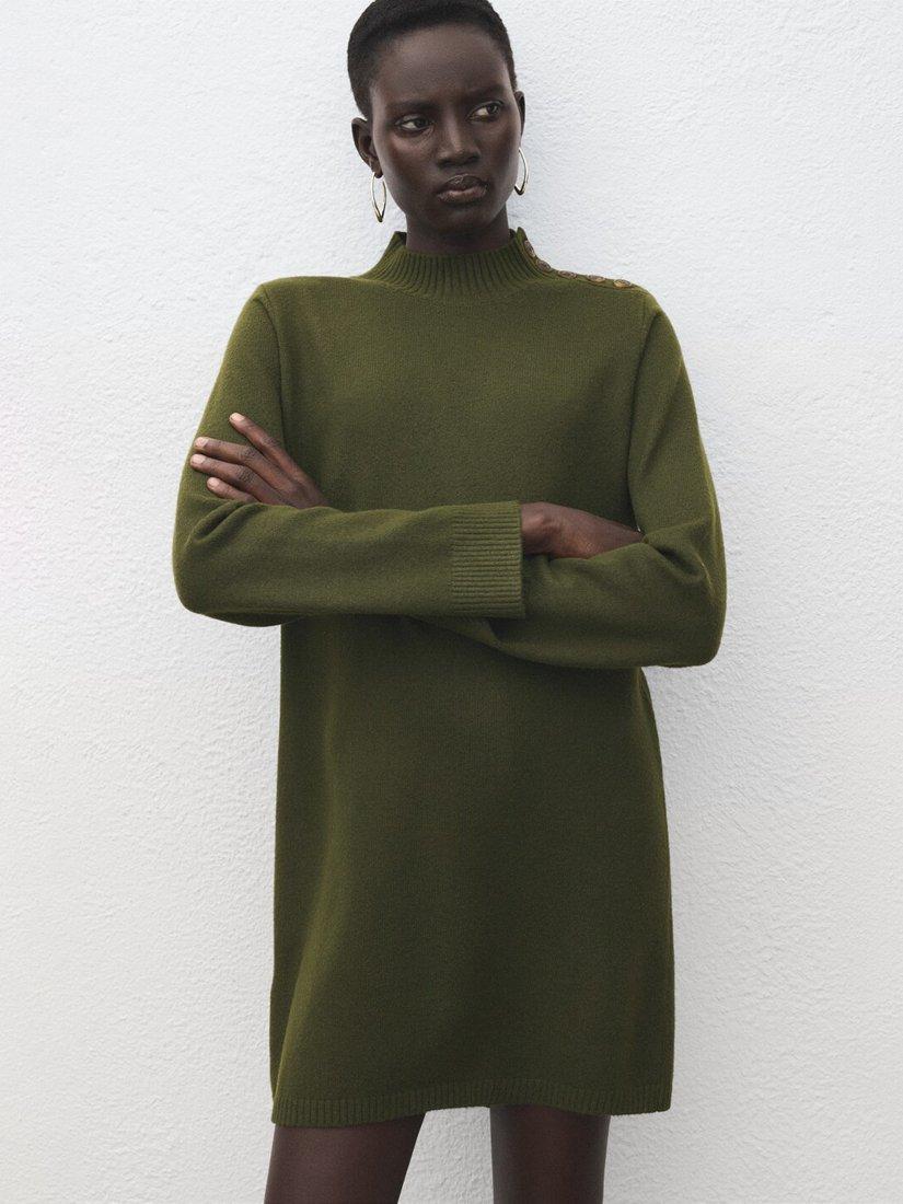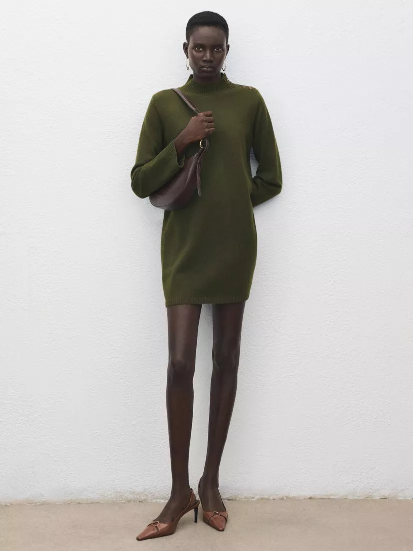 MangoButton Shoulder Jumper Mini Dress, Khaki