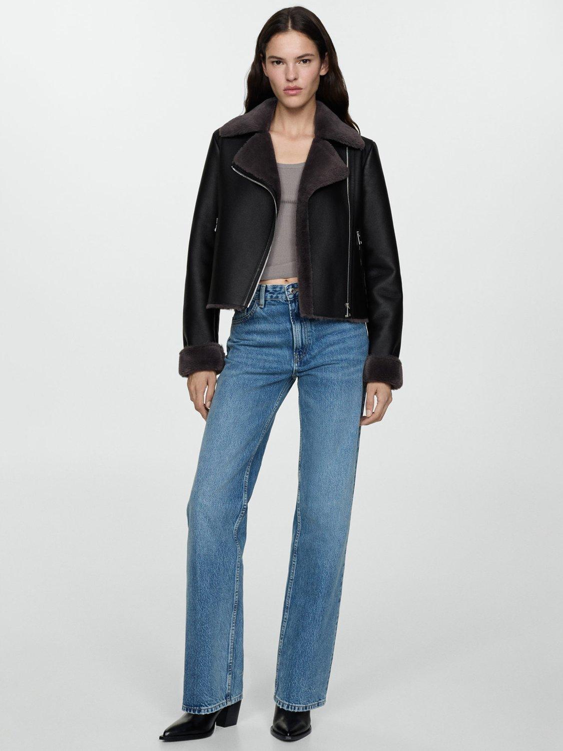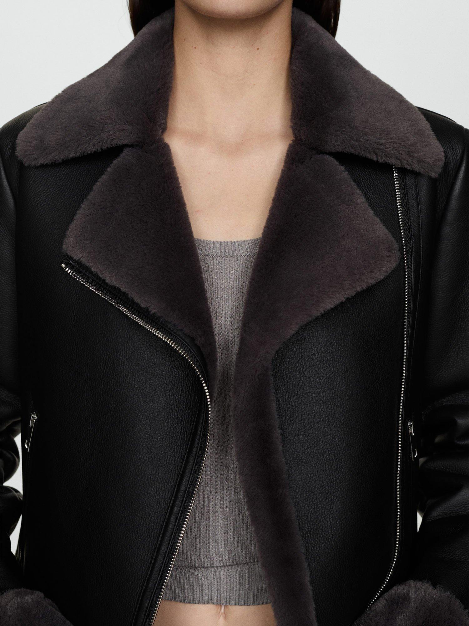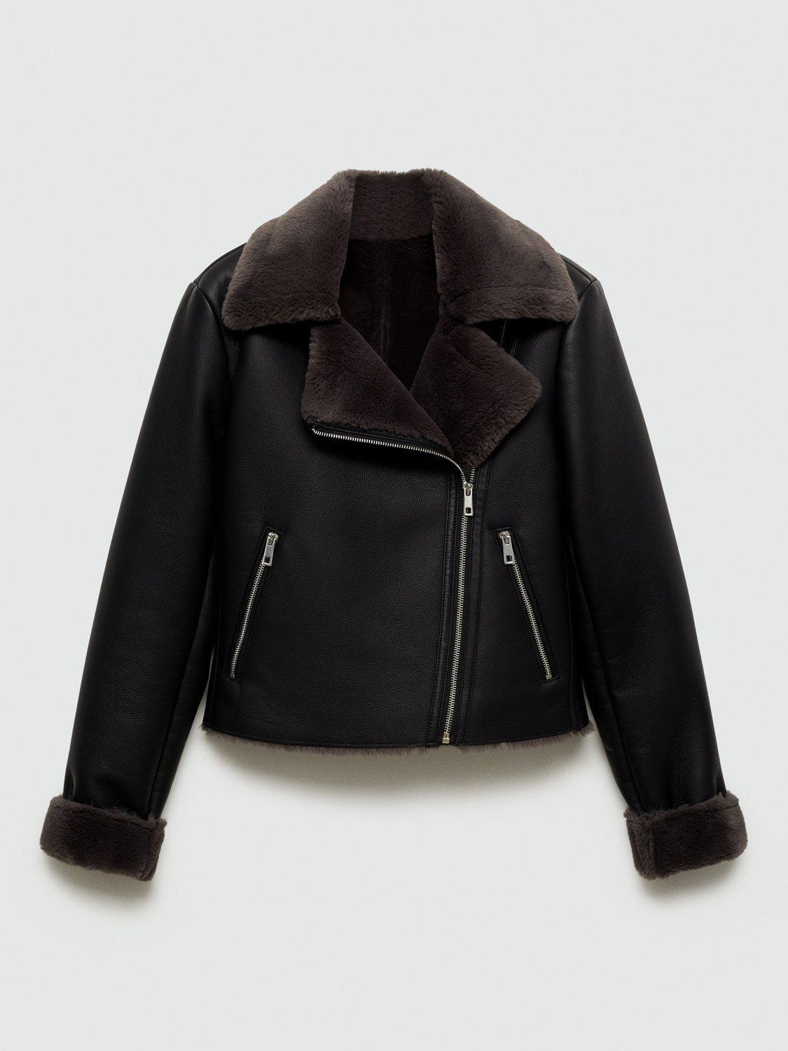Begging to be worn again and again, this biker style by Mango sits at the hip for versatile coverage. With a functional zip and pockets, it is made from faux leather with a faux fur trim.