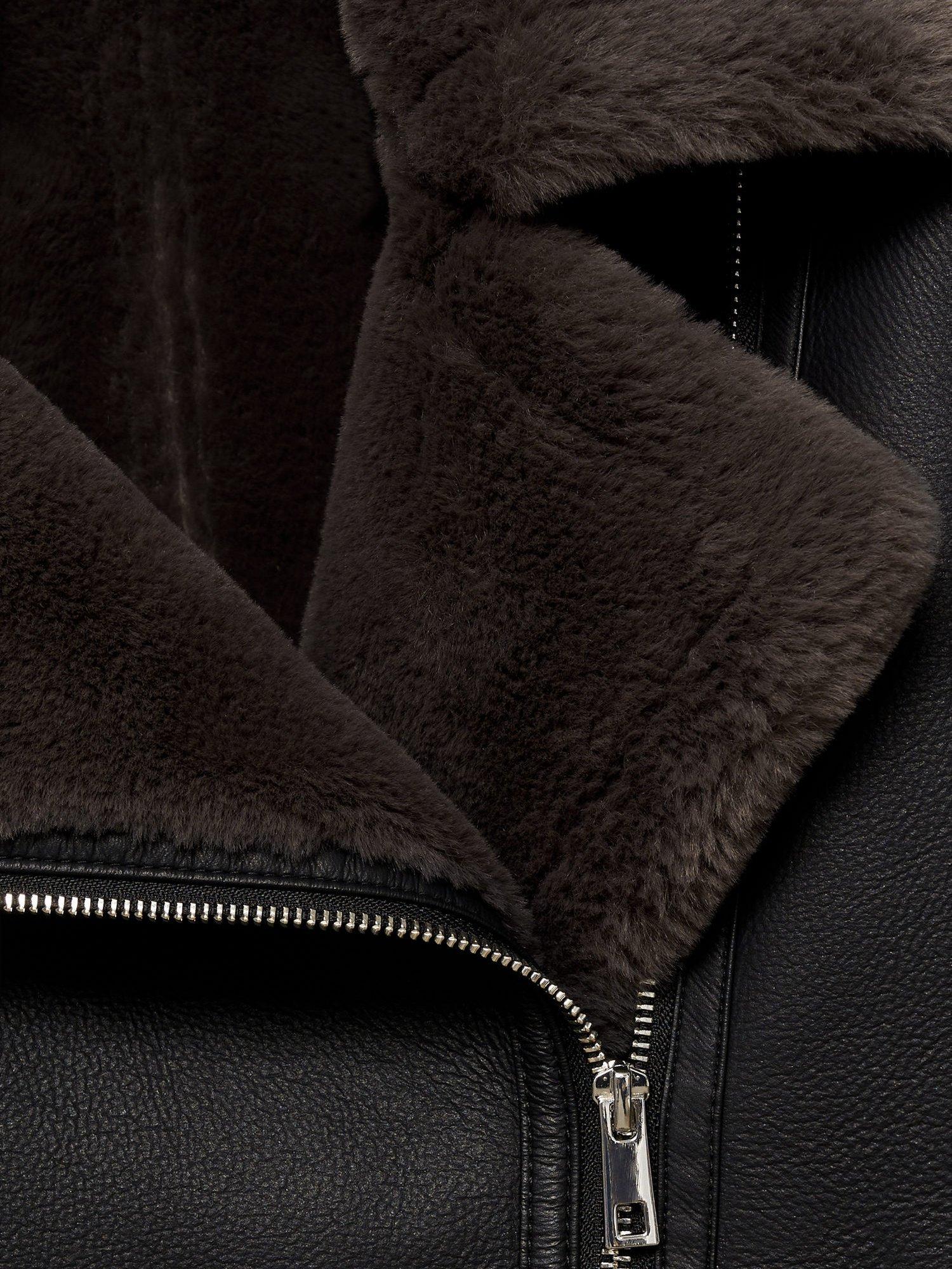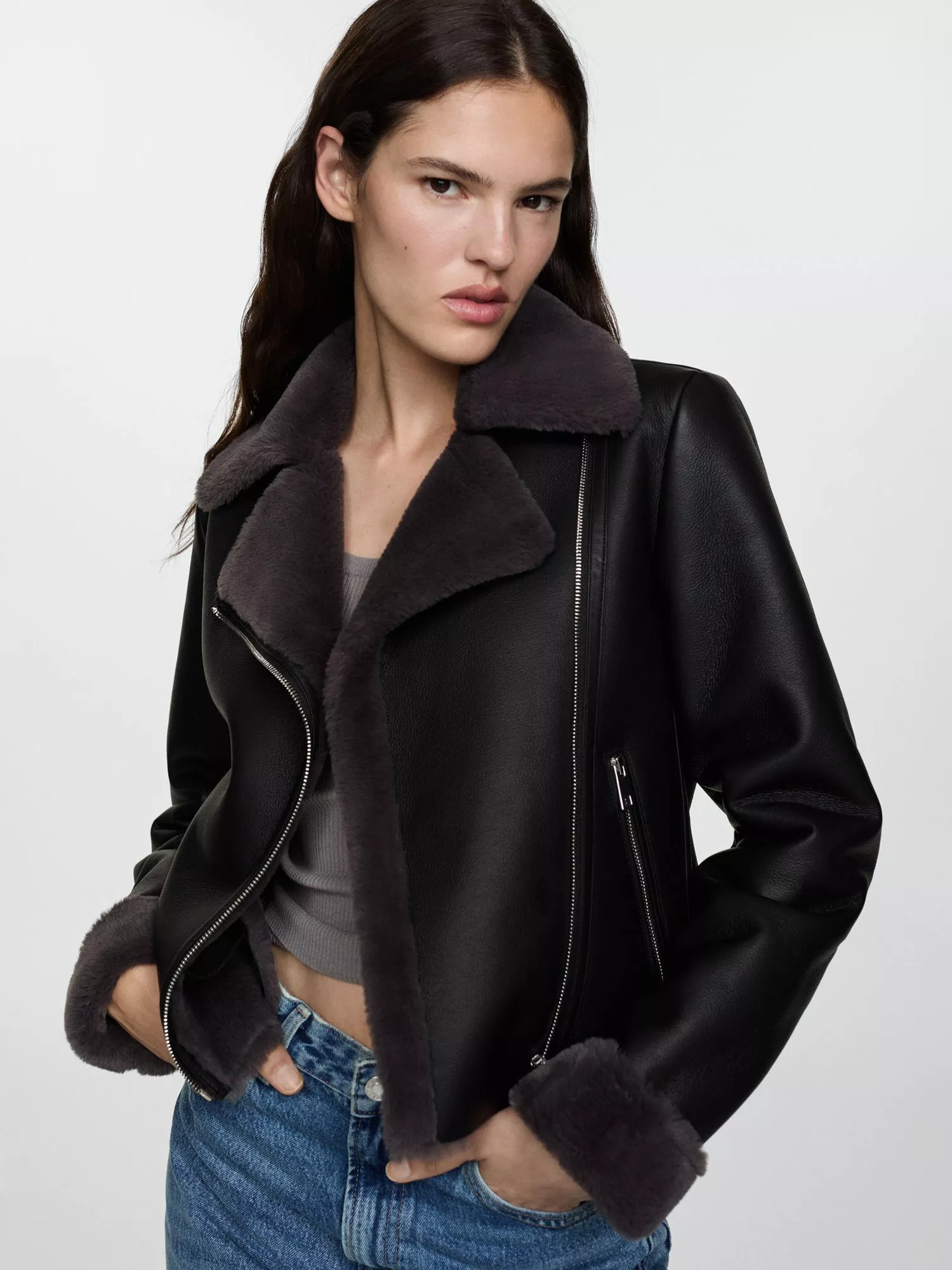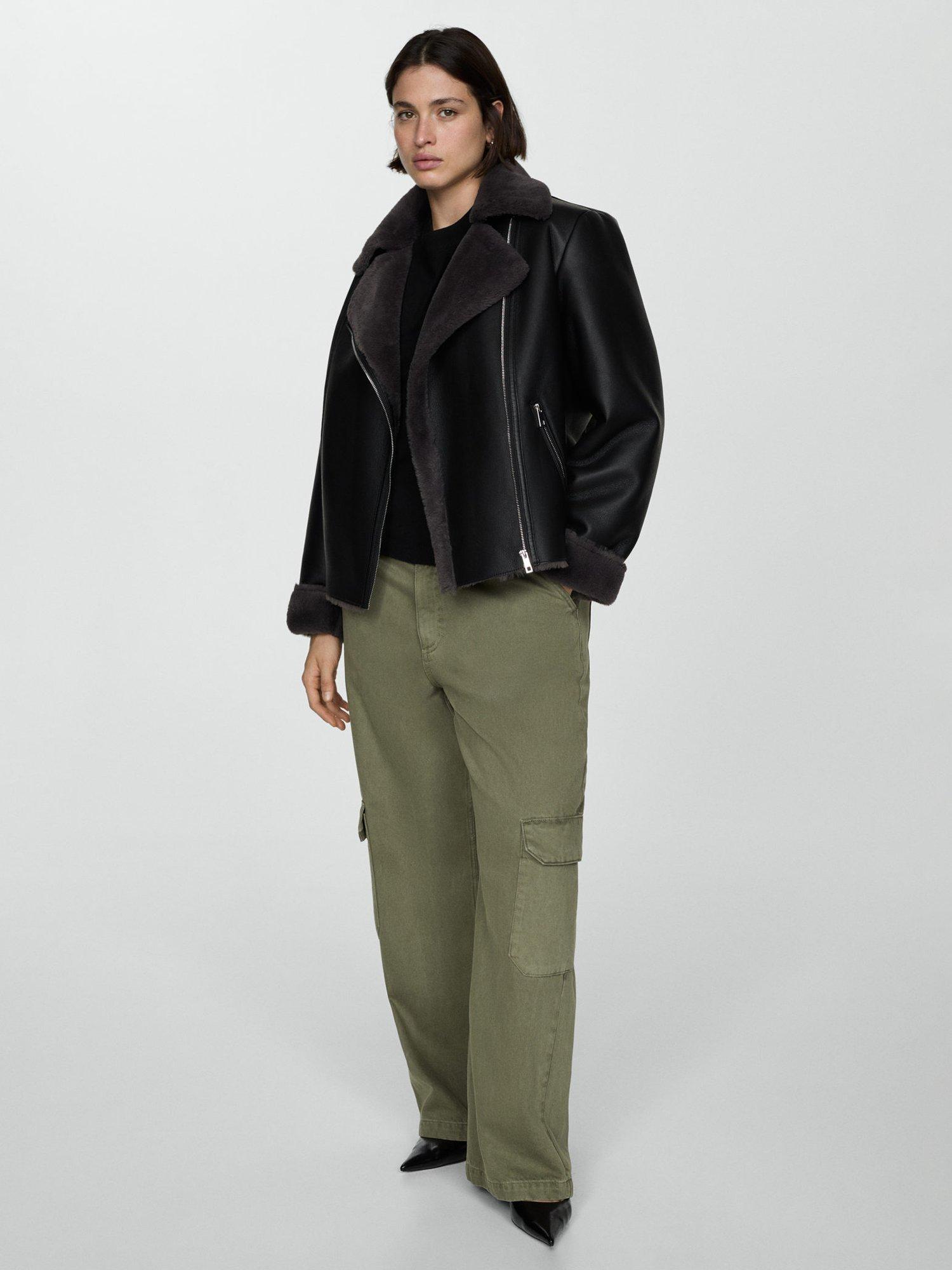 Begging to be worn again and again, this biker style by Mango sits at the hip for versatile coverage. With a functional zip and pockets, it is made from faux leather with a faux fur trim.