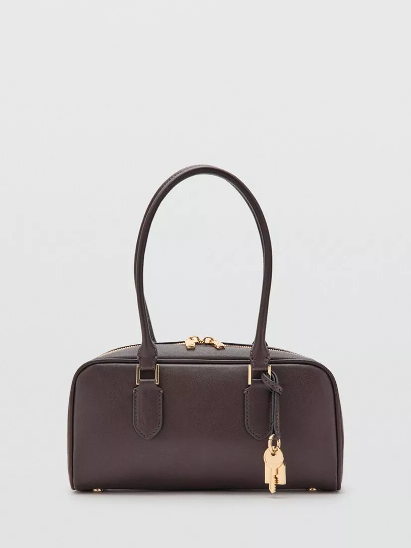 This bowling-style shoulder bag is designed to keep your essentials organised and easy to reach. Its zip fastening means your belongings stay secure, finished with a gold-toned lock and key charm.