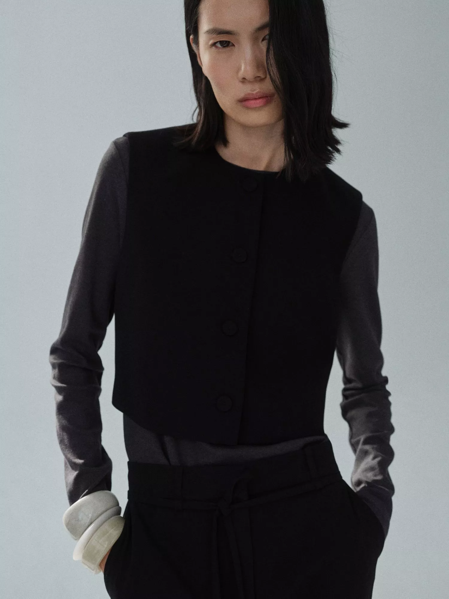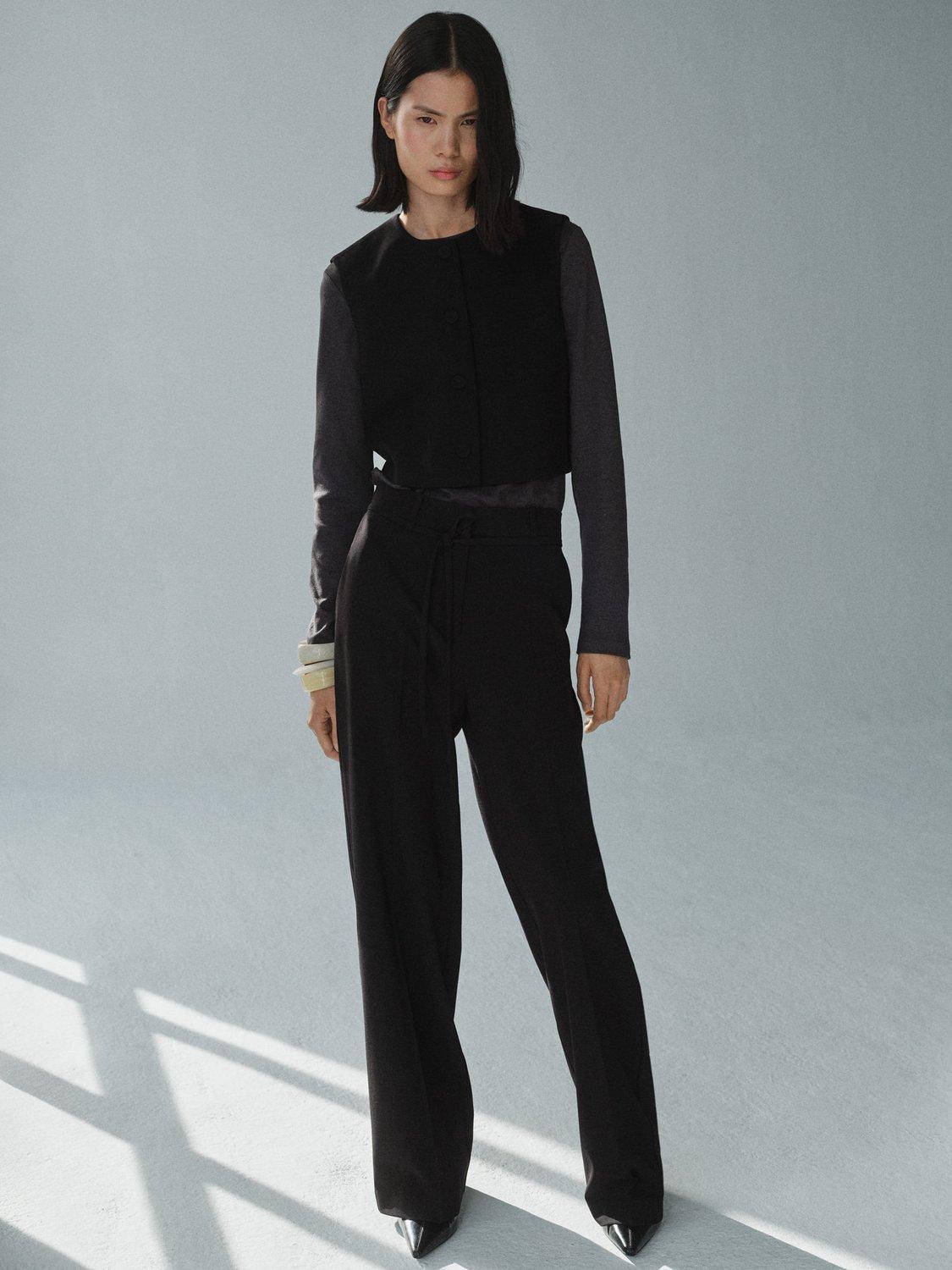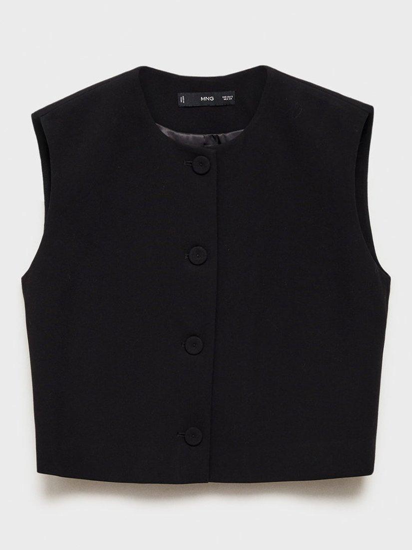 Carved with a round neck, this sleeveless waistcoat from Mango highlights the waist with its cropped hem. Made from a soft blend with wool, it buttons up through the front.