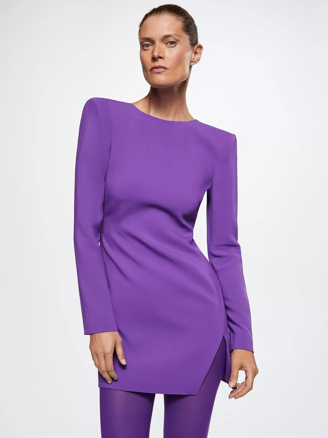 In an A-line silhouette, this mini dress by Mango complements bold accessories with its plain canvas.