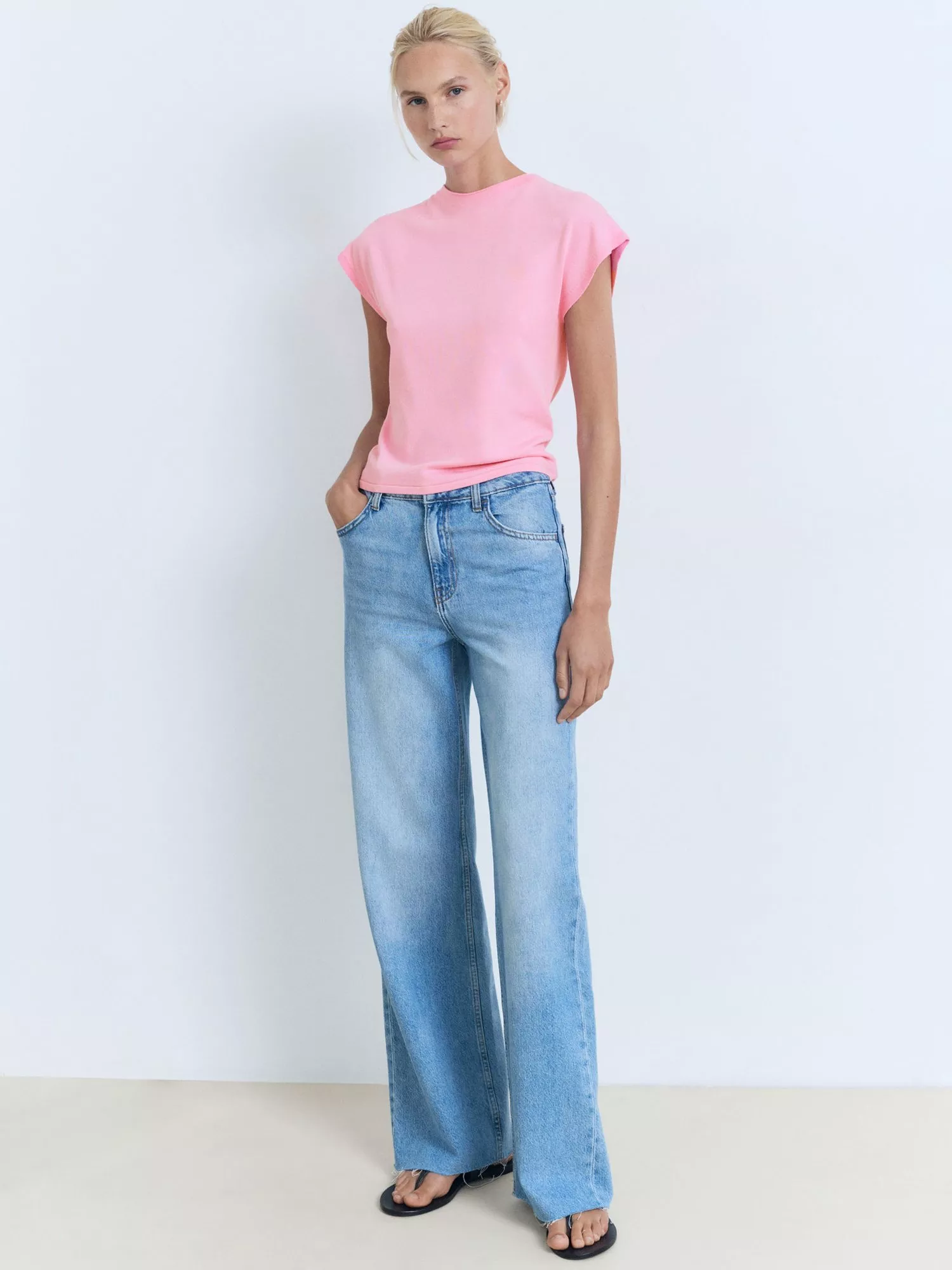 This fine knit jumper feels soft and breathable, ideal for layering or wearing on its own. The classic round neck and short sleeves keep you comfortable and ready for anything your day throws at you.