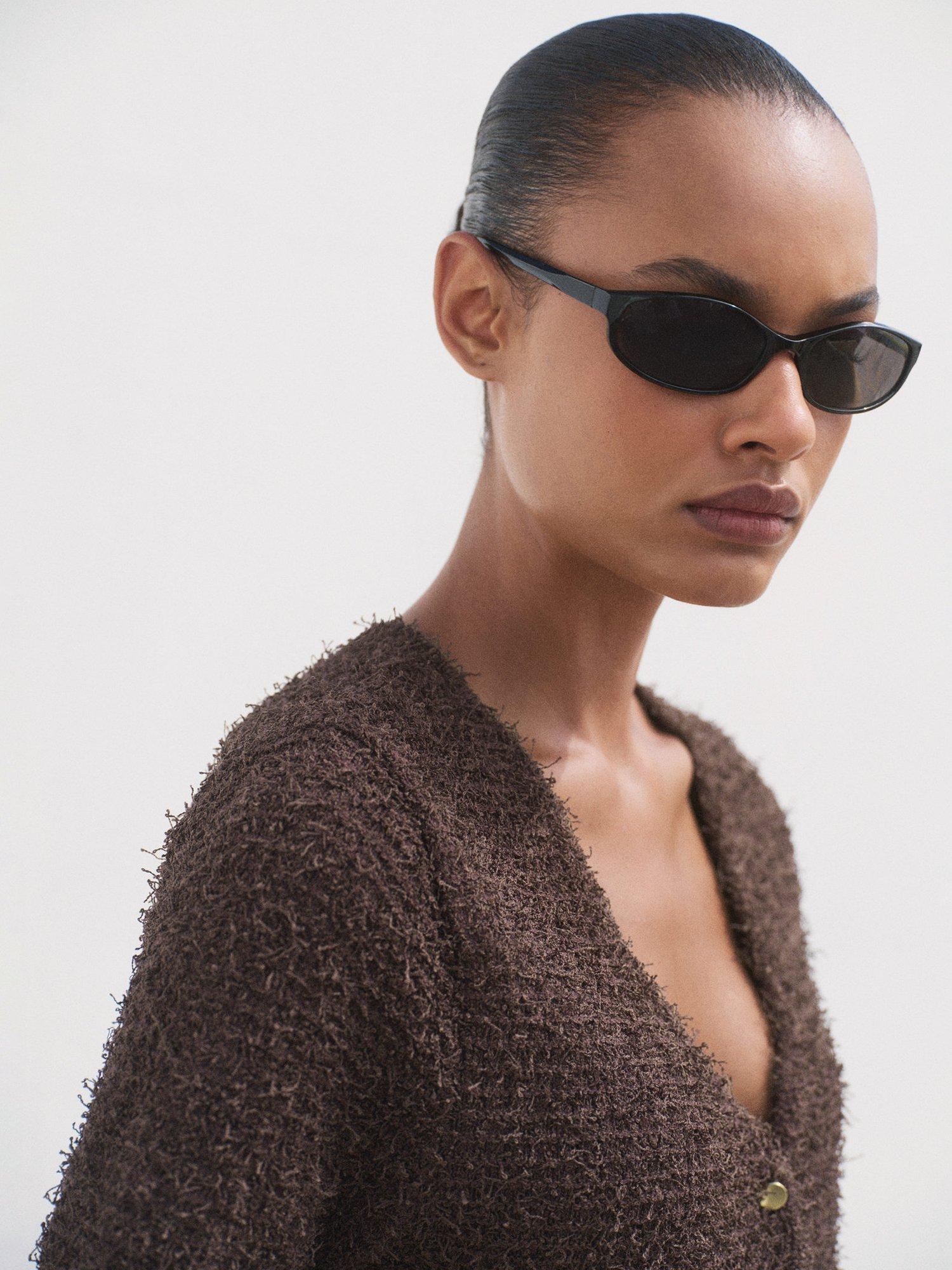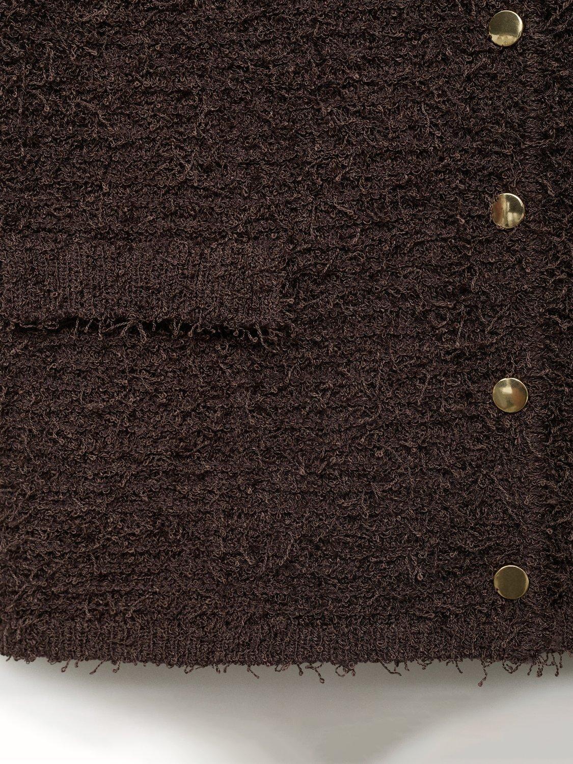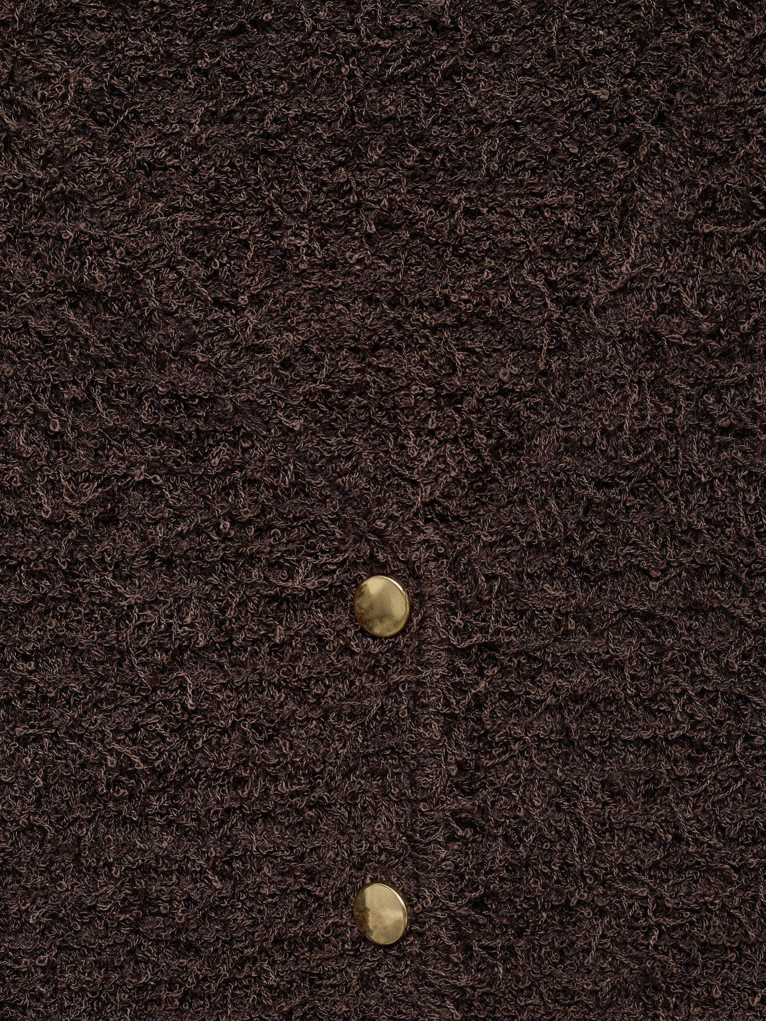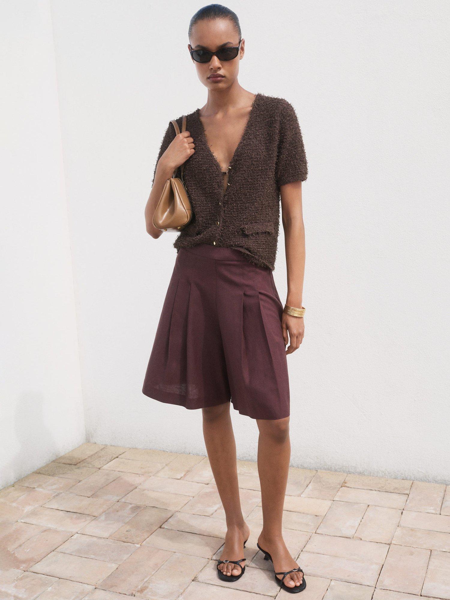 This Mango fluffy bouclé jacket offers a unique textured look with a flattering V-neck and short sleeves. The button fastening keeps you comfortable while adding a sharp touch to your everyday style.