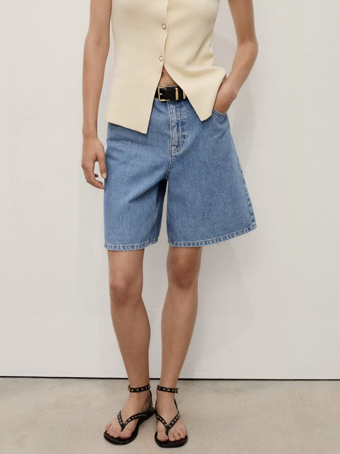 Mango's high-rise wide leg denim shorts offer lasting comfort and easy style for busy days. Crafted from pure cotton denim, they bring a sense of freedom and effortless confidence to your daytime adventures.