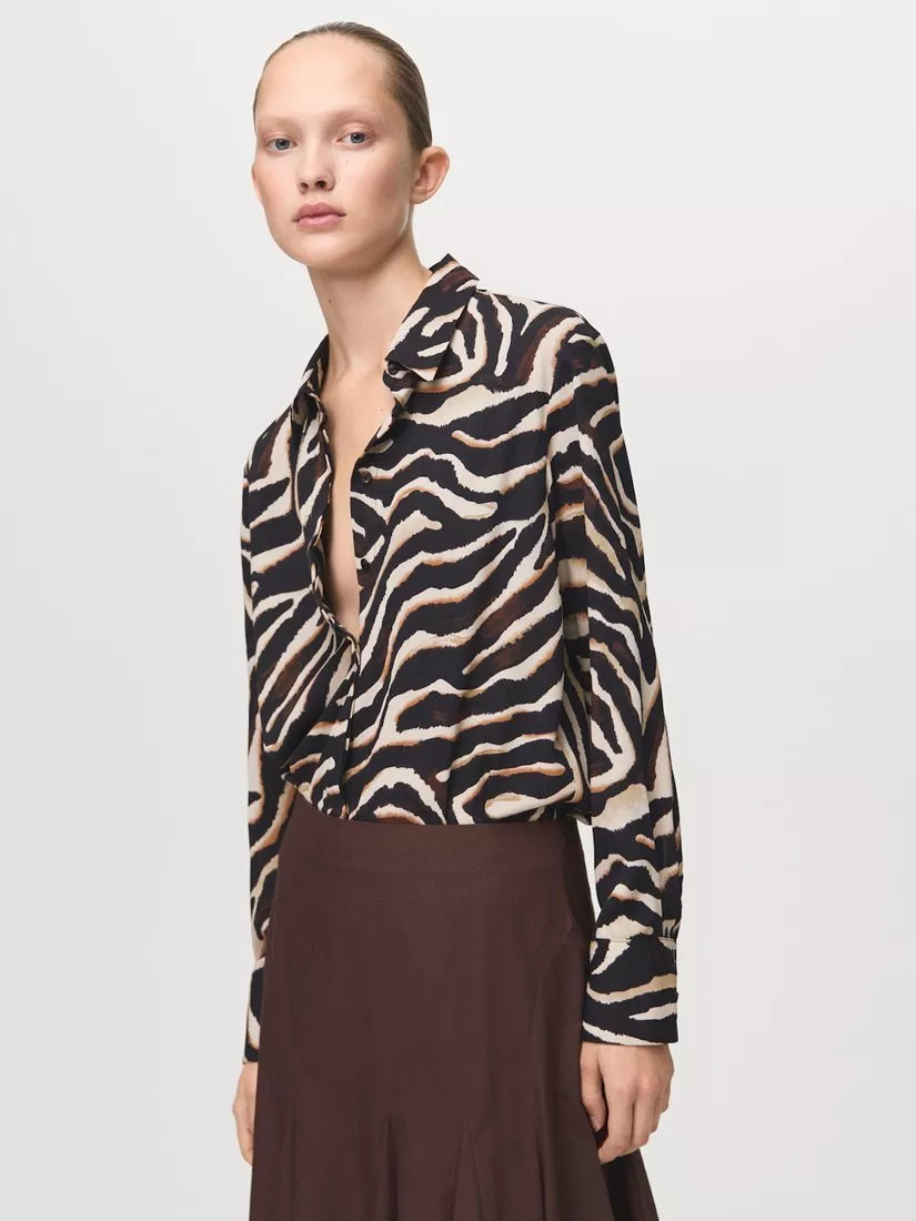 A relaxed shirt from Mango. Featuring a collar and long sleeves, it's wrapped in a striking animal print. Everyday ease with a stylish twist.