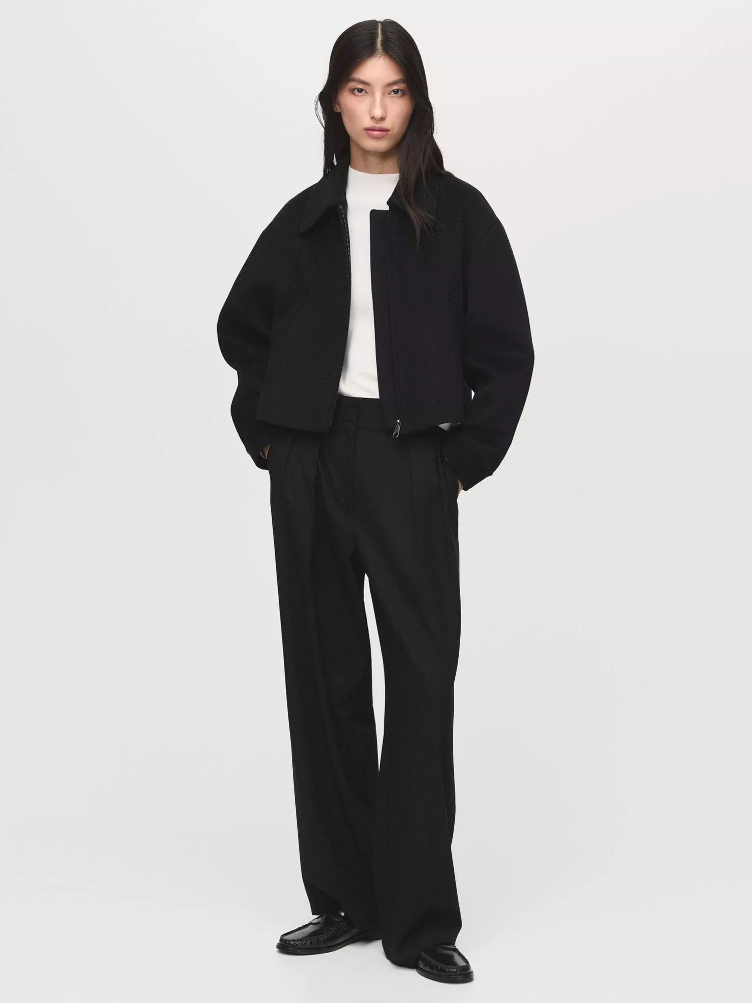 In a style that always comes up trumps, this humble bomber jacket from Mango sits at the hips for practical coverage.