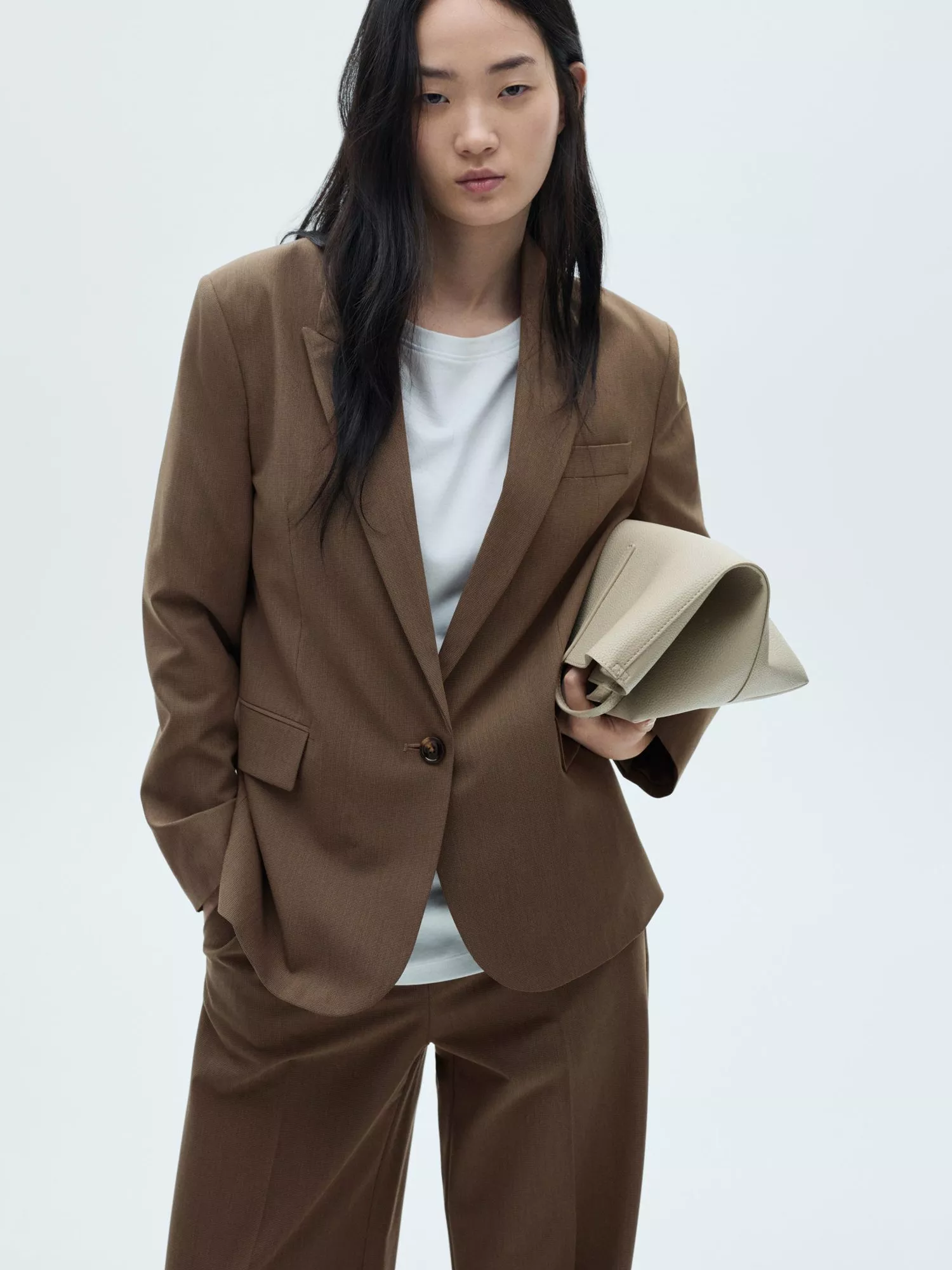 MangoCardiff Single Breasted Blazer, Brown, 6XL