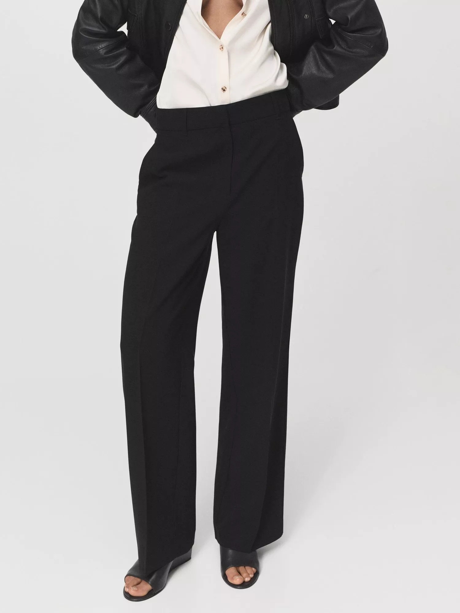 A sharp silhouette anchored by straight leg - a pair of tailored trousers from Mango. This style is cut to sit mid rise with a hook and eye and zip fastening.
