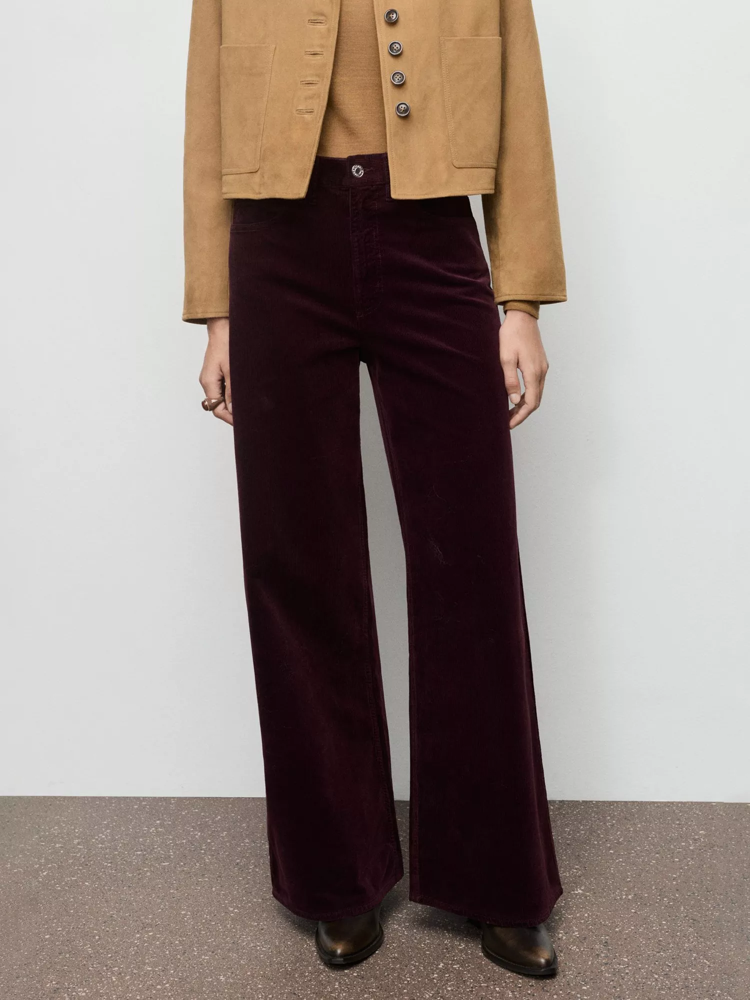 A pair of tailored wide-fit jeans from Mango. Made from a cotton corduroy blend with a comfortable mid rise and a button and zip fastening, they fall to a full-length.