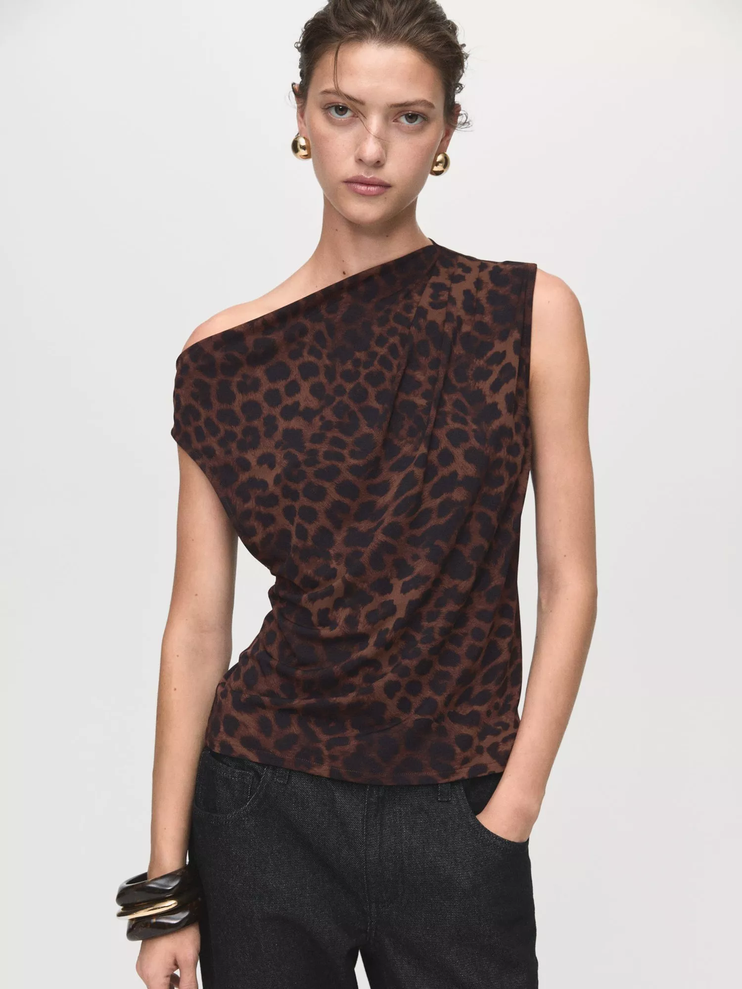 Simple and versatile top by Mango. Featuring an asymmetric neck, it's wrapped in leopard print. One for your everyday lineup.