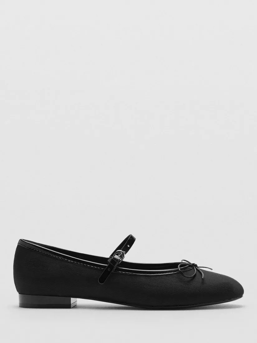 These classic Cassie ballerina pumps from Mango are elevated with stripe detailing on the upper, a Mary-Jane-inspired strap closure with buckle and a decorative bow. Complete with inner lining for all-day comfort.