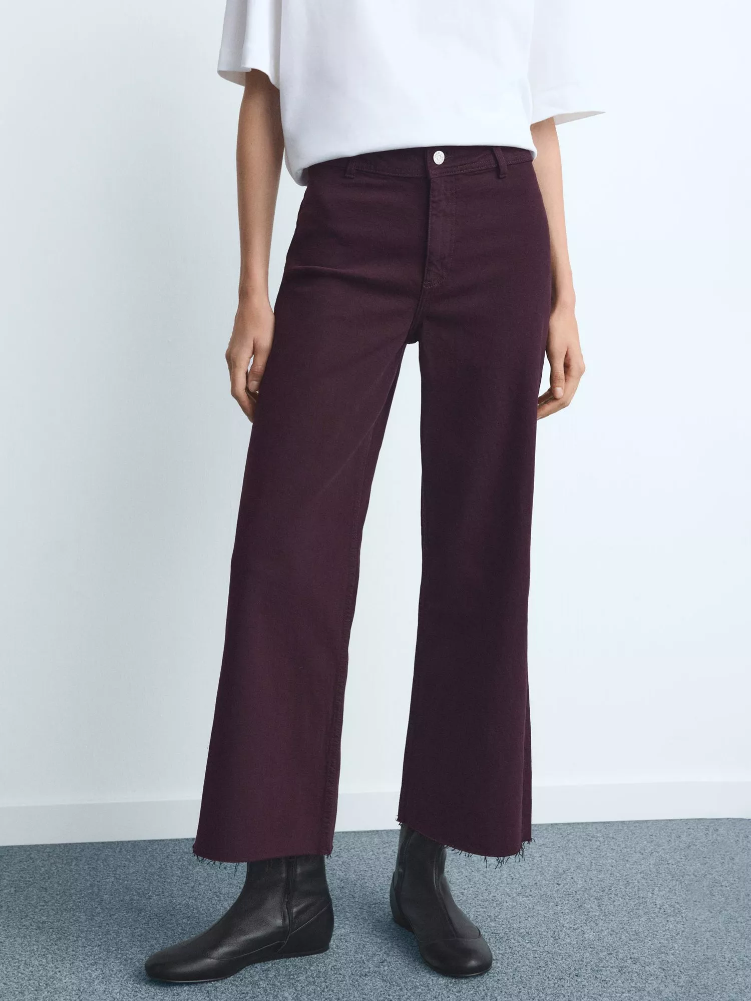 MangoCatherin Frayed Hem Cropped Jeans, Dark Red