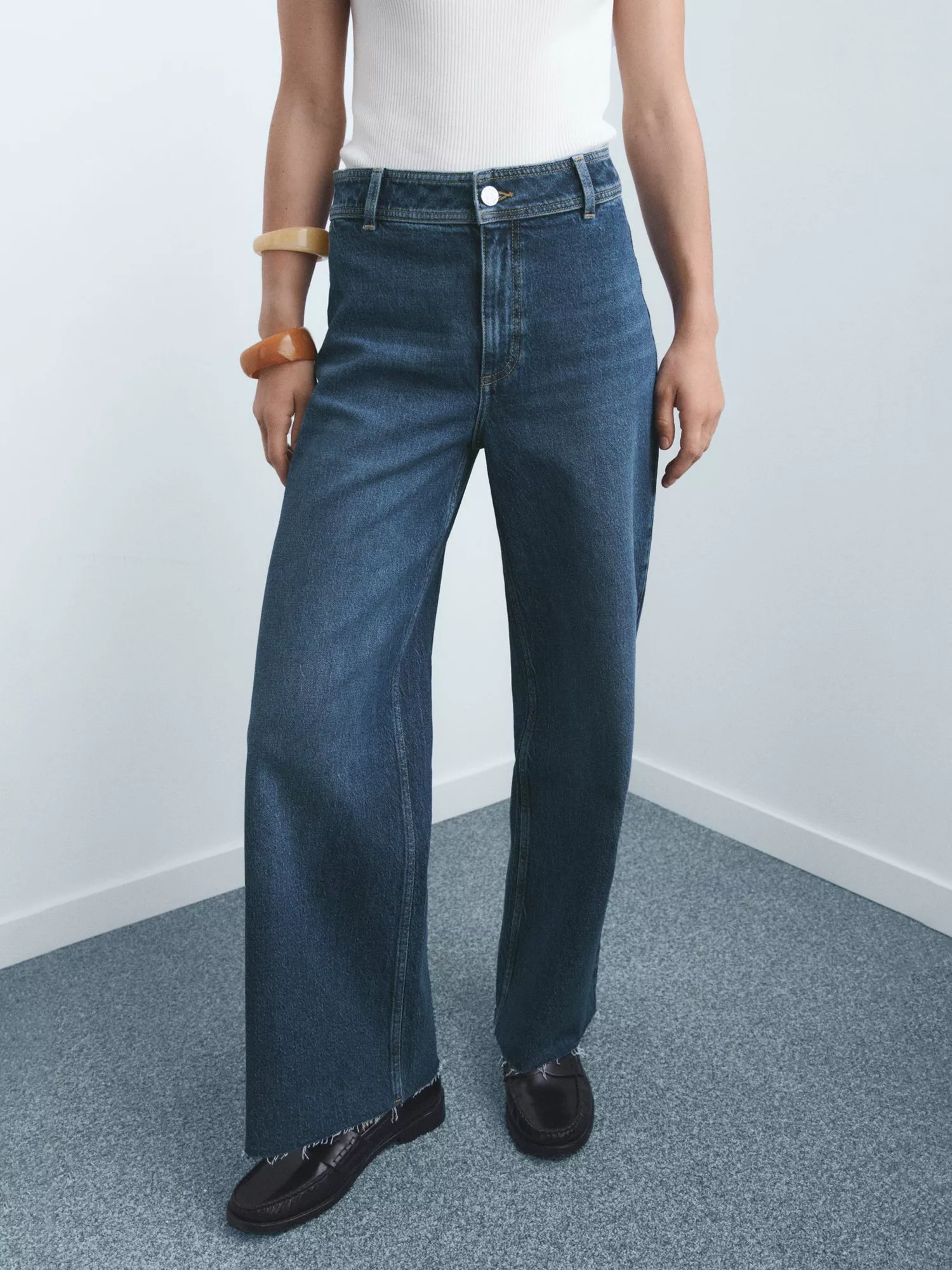 Super wide leg jeans from Mango. Made in denim featuring a high rise and a zip fastening, they fall to a regular length.