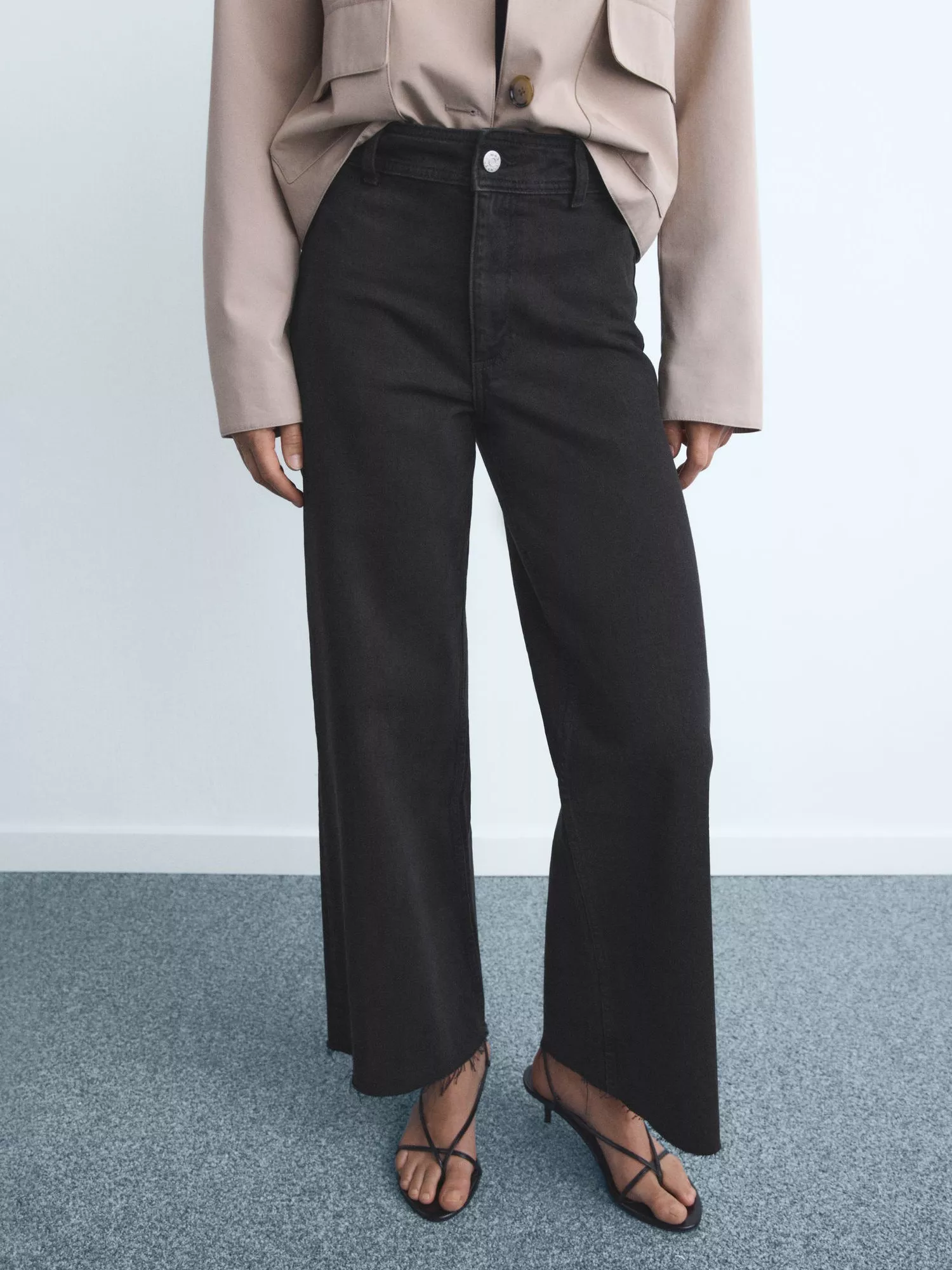 Made to be worn with absolutely everything - a pair of wide leg jeans Mango. Made in denim with a high rise and a zip fastening, they are cropped at the ankle.
