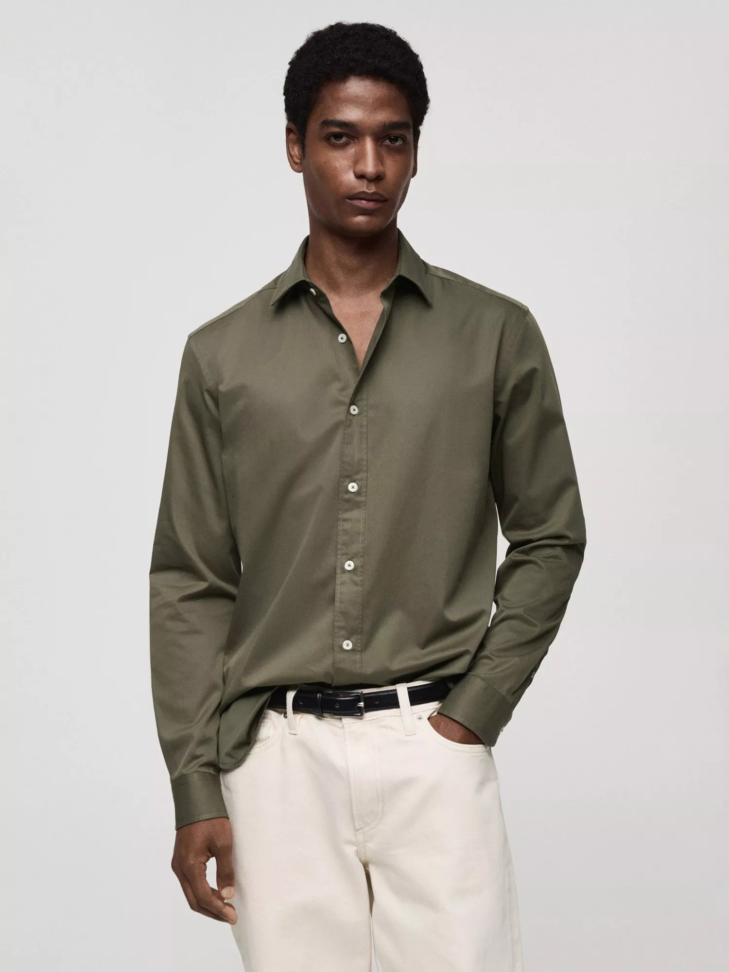 Regular fit long-sleeved cotton shirt from Mango. Styled with a classic collar, button closure, buttoned cuffs and a rounded base.