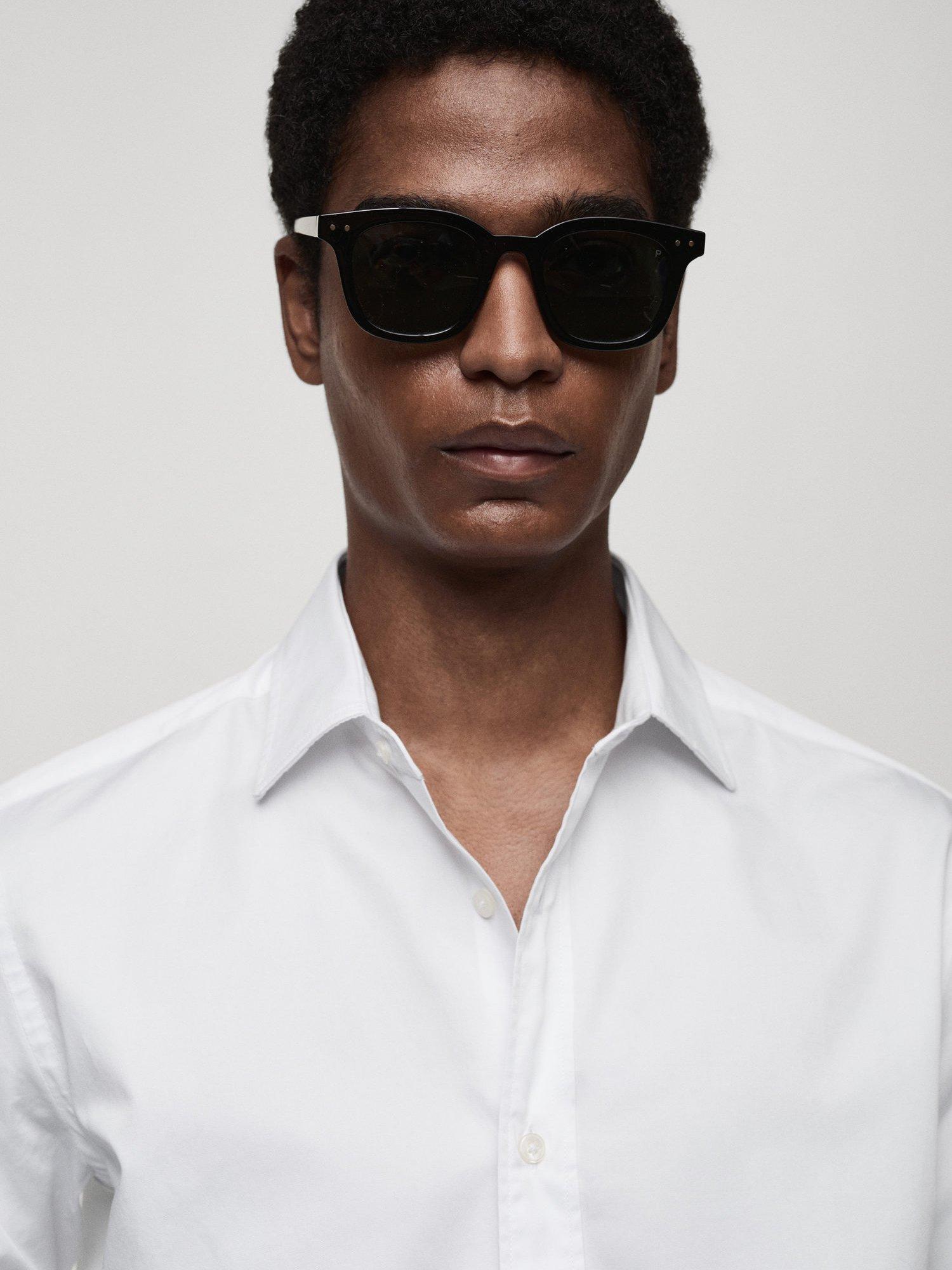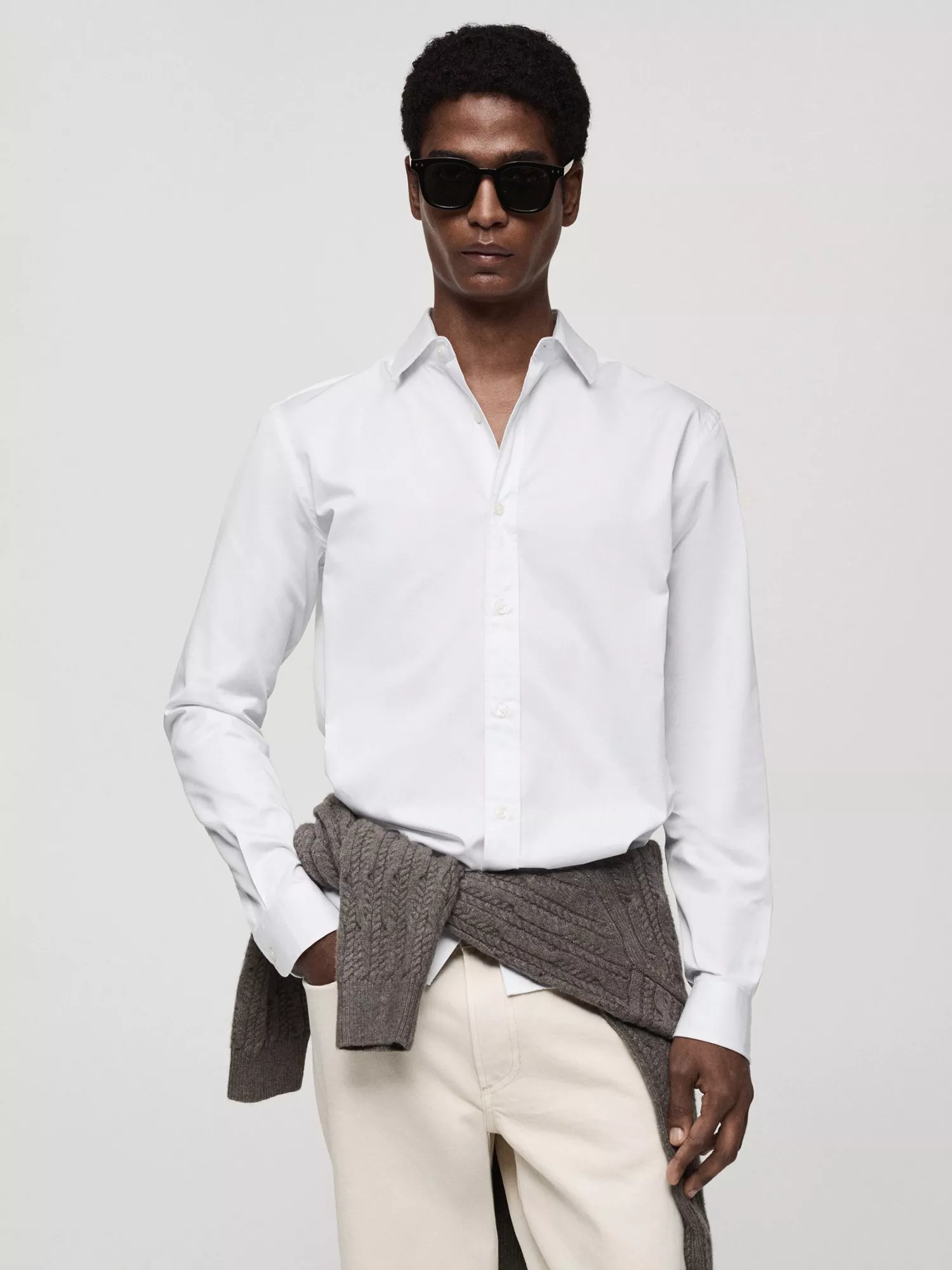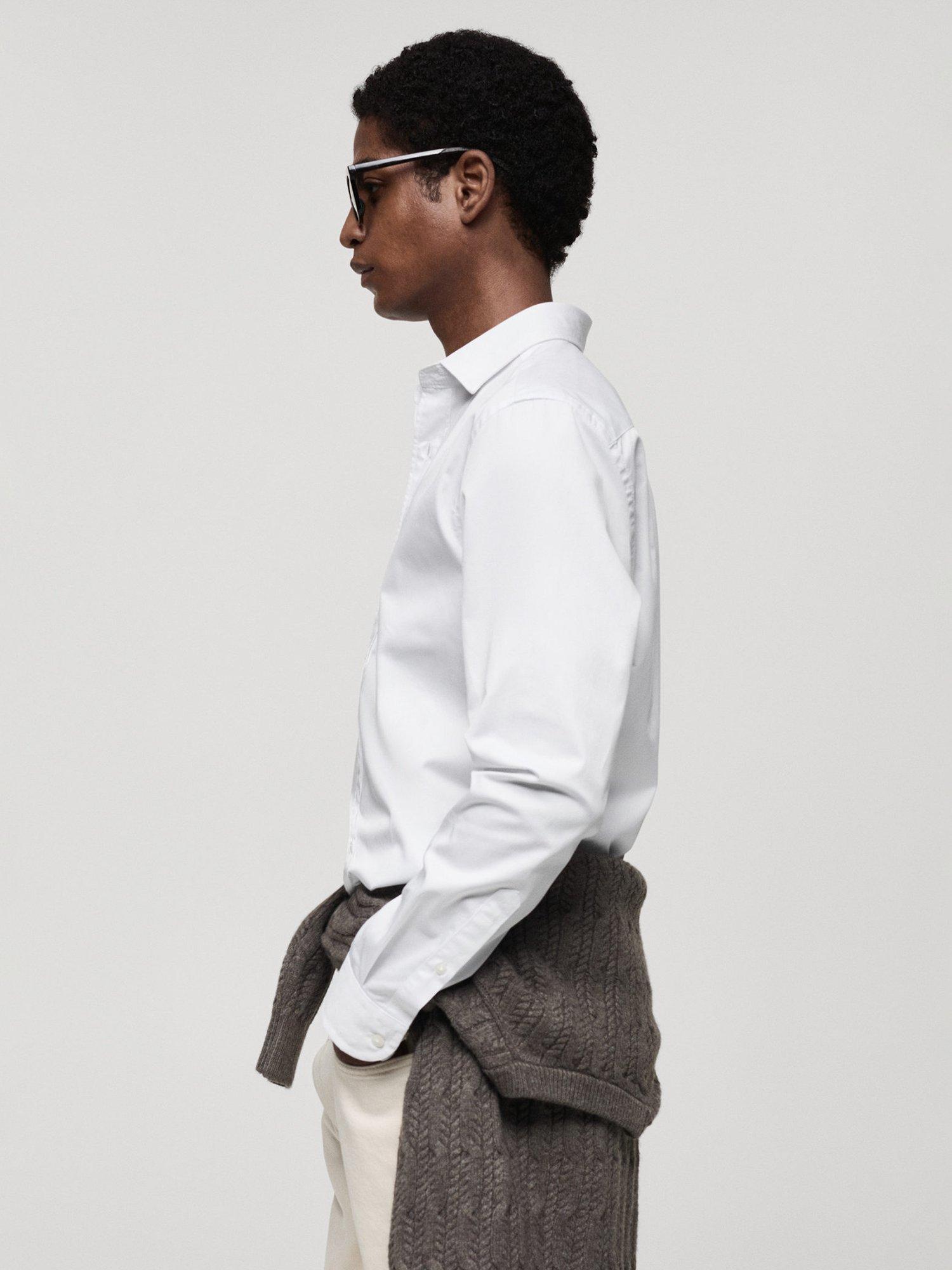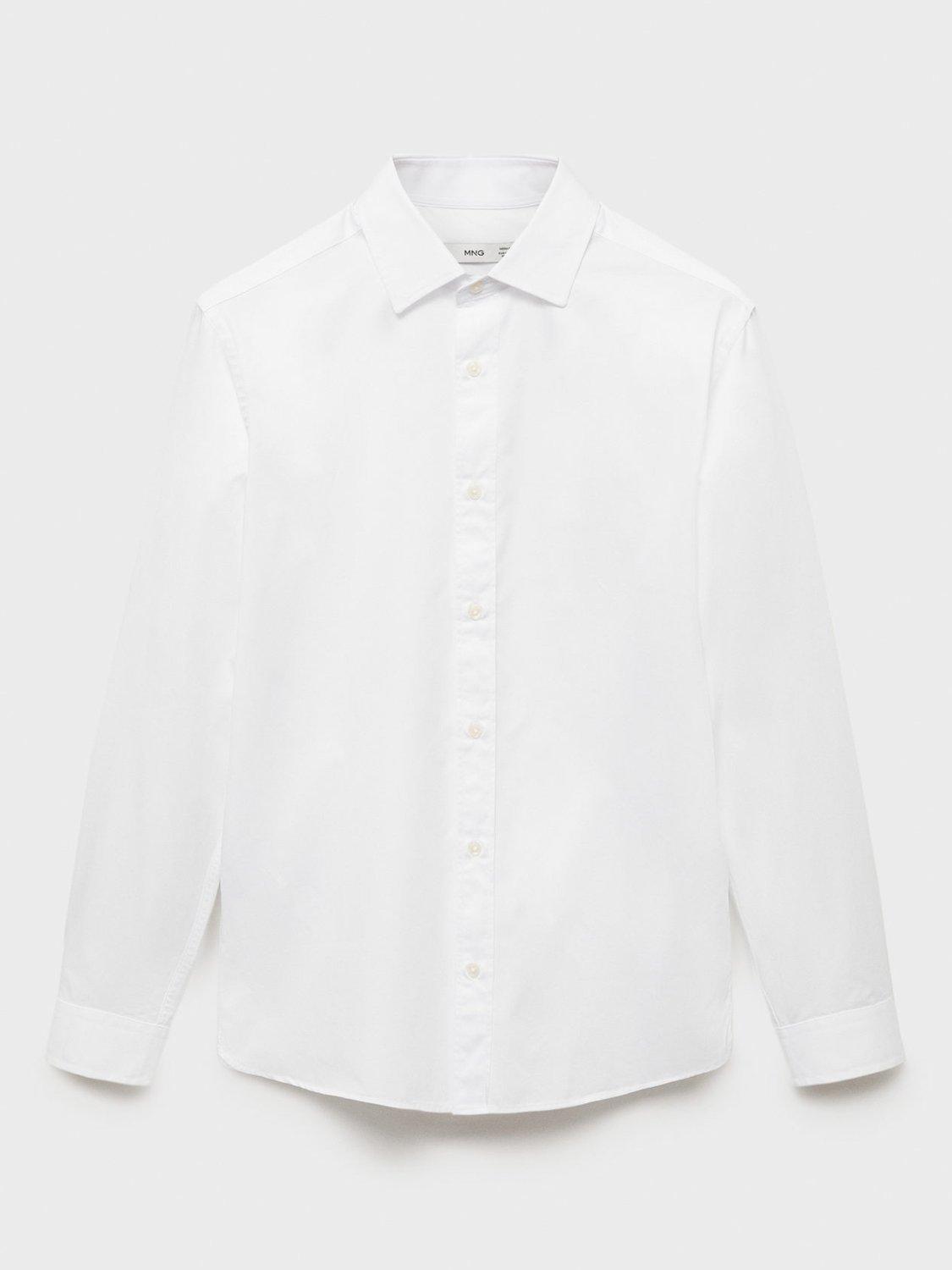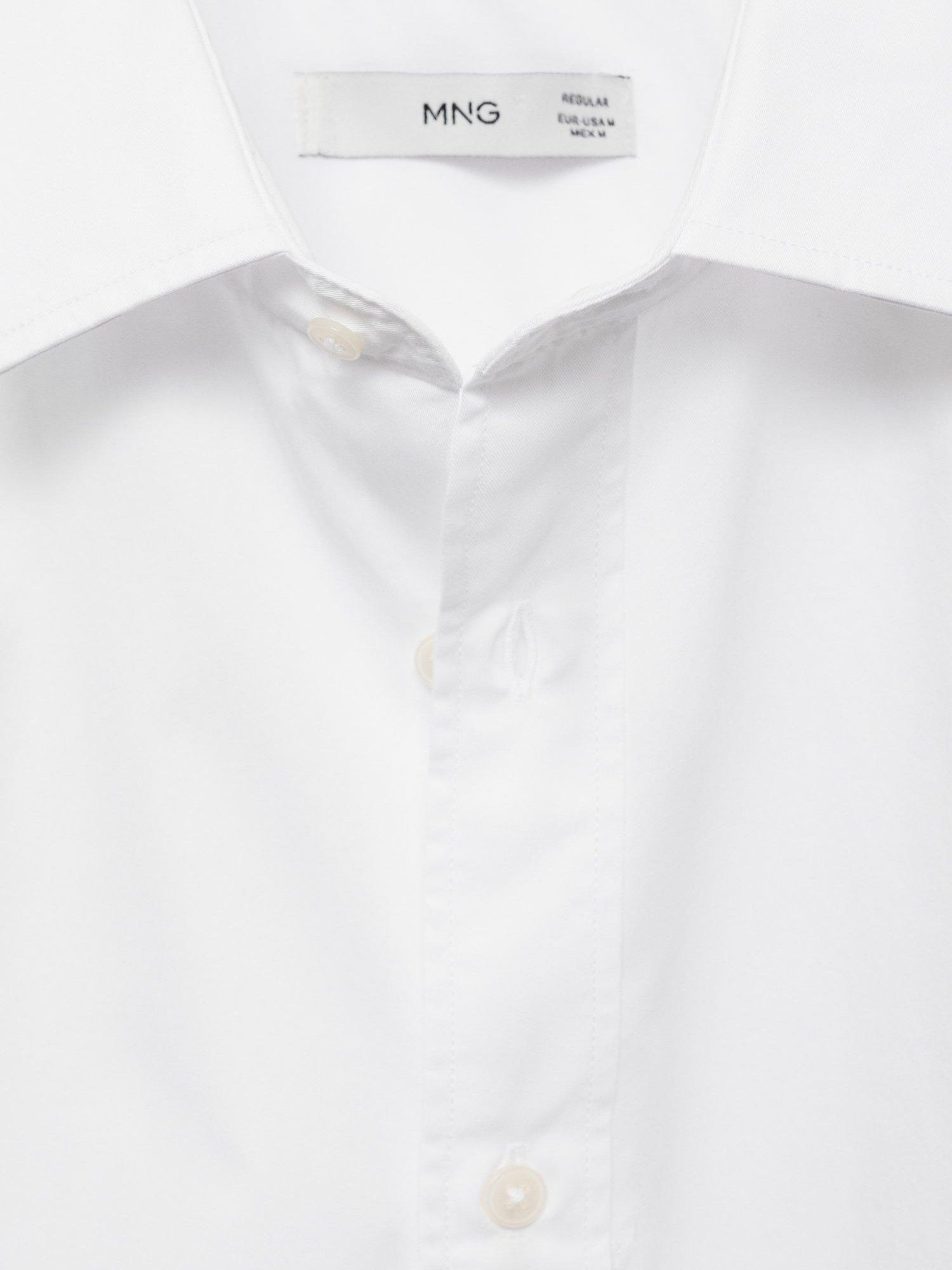 Regular fit long-sleeved cotton shirt from Mango. Styled with a classic collar, button closure, buttoned cuffs and a rounded base.