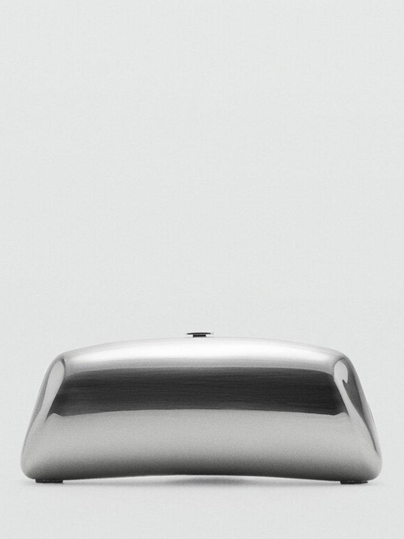An evening clutch lends structure and shine to after-dark dressing, lined with cotton for a touch of softness and finished with brass trim for standout appeal at any event.