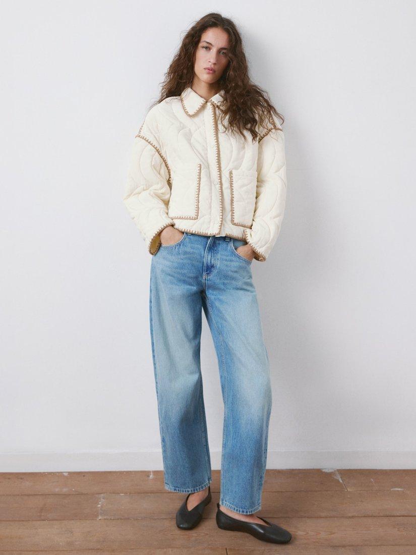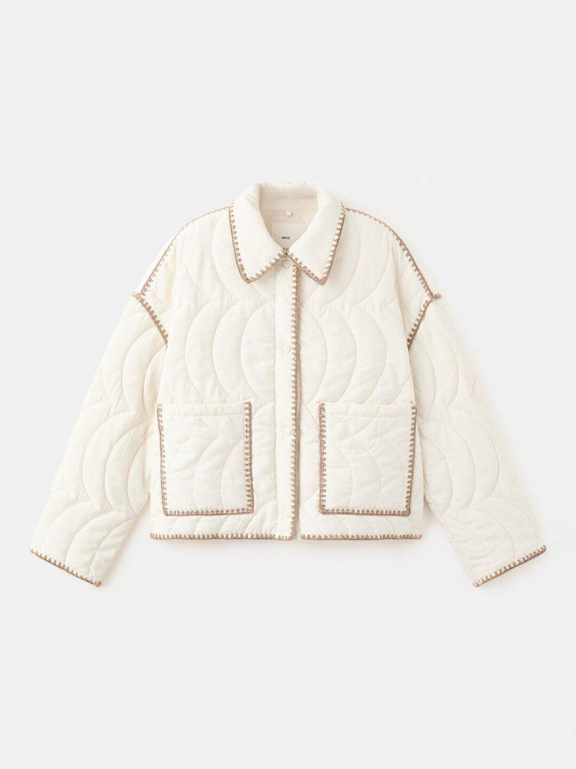 A contrast stitch quilted jacket by Mango, designed for comfort in everyday settings. Its regular fit and soft lining ensure ease on the move, while popper fastenings let you adapt quickly to changing moments.