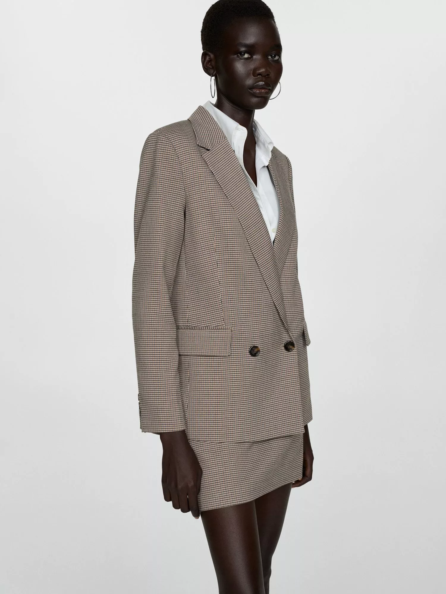 For smarter settings that call for a tailored touch, this double-breasted blazer from Mango features an all-over dogtooth print and is fashioned from longlasting fabric that will see away the cold.