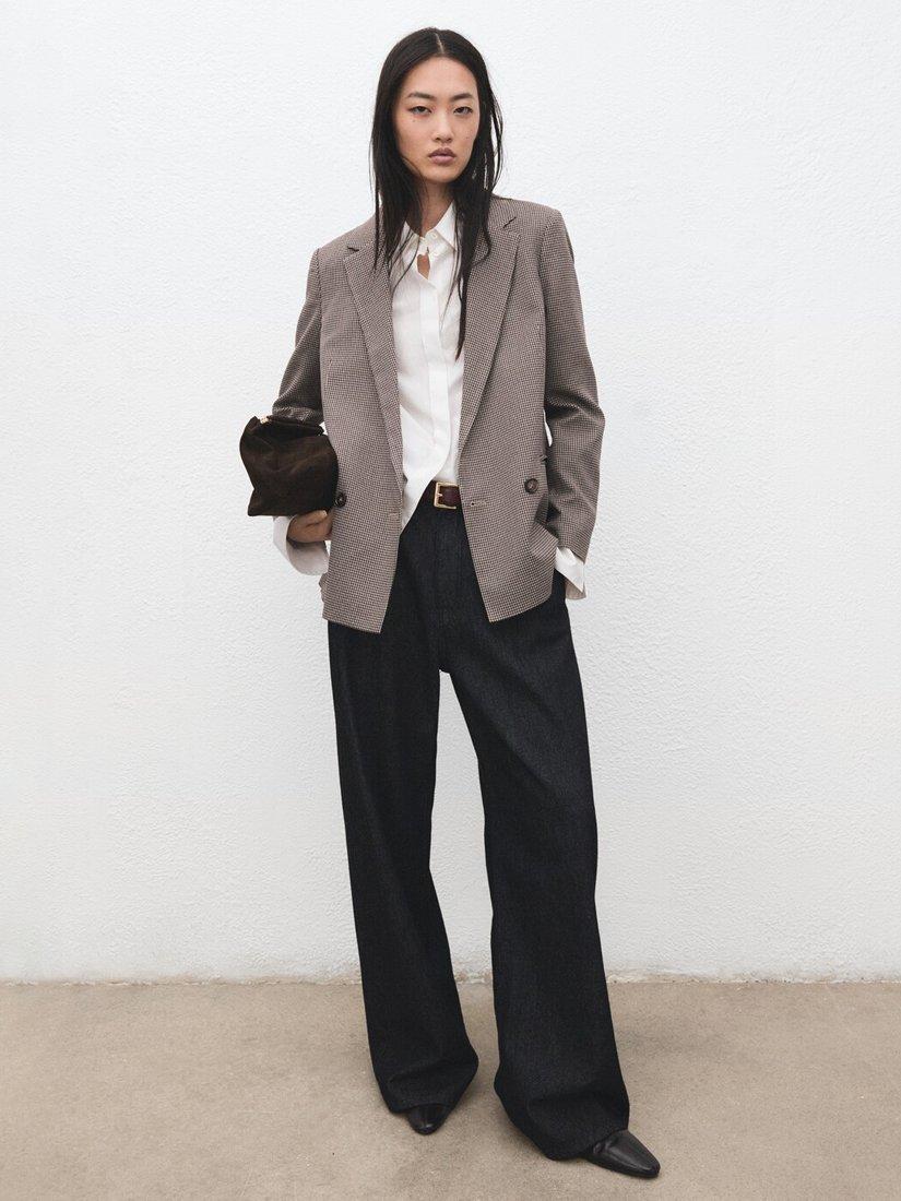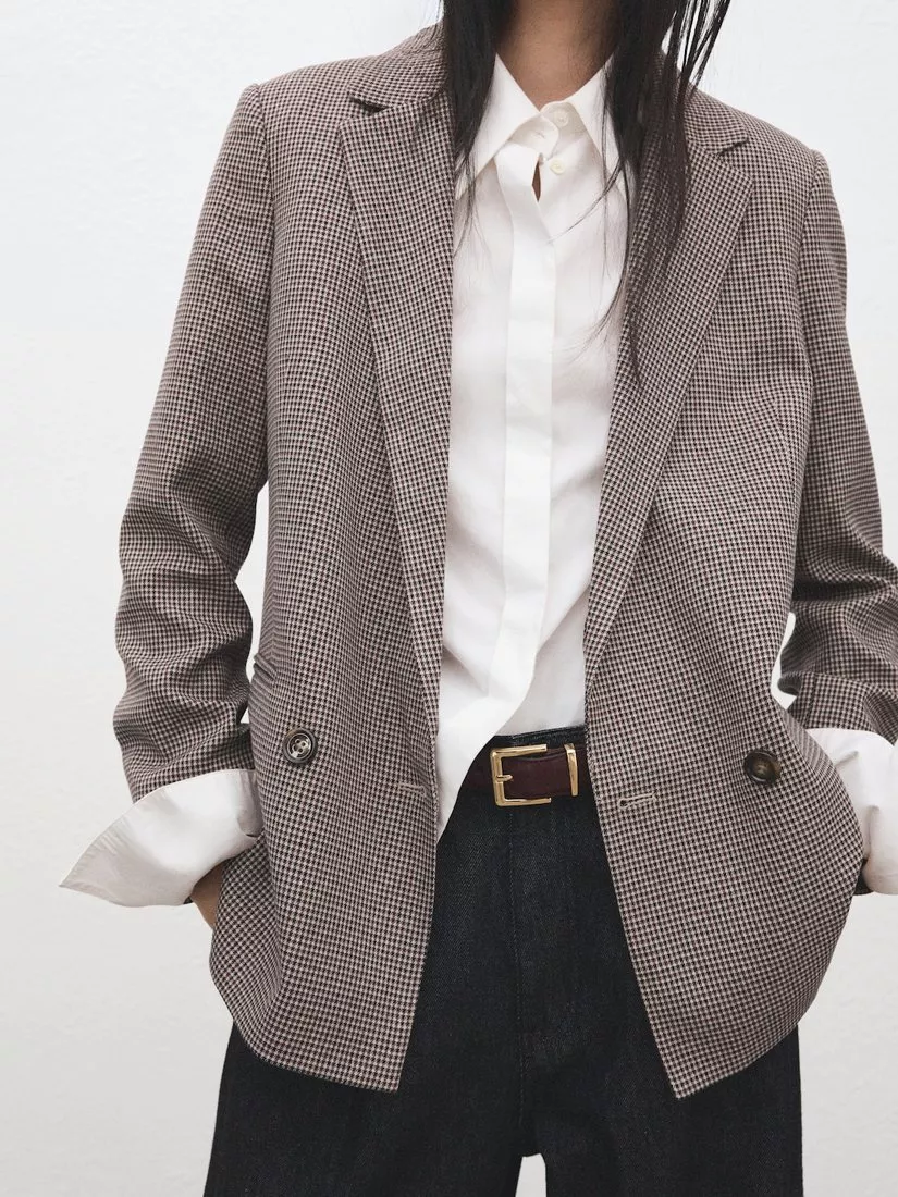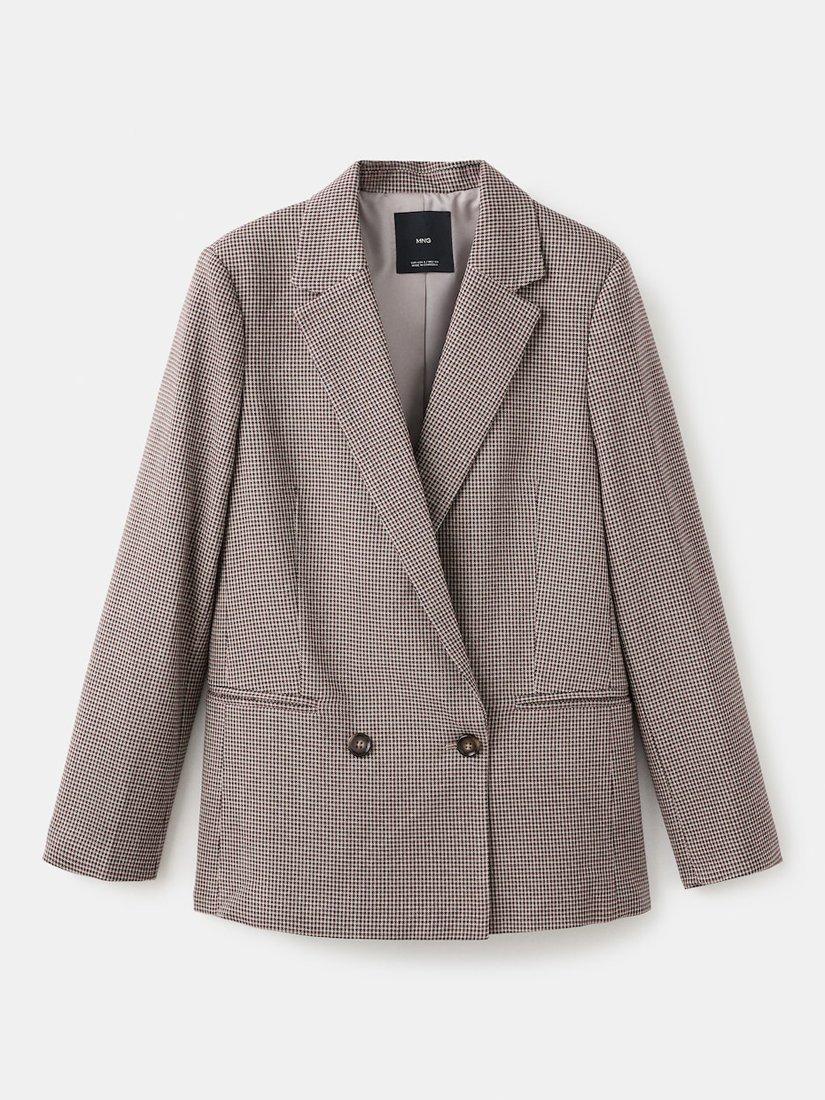 A check double-breasted blazer by Mango. In a micro houndstooth print, its classic collar and smart button fastening ensure comfort and ease whenever you wear it.